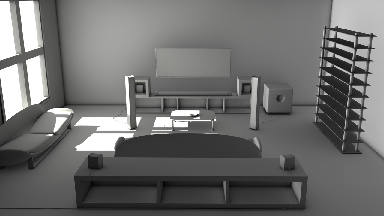Realizzato con c4d r13, GI, AO, una luce infinita come sole con intensità 200% e luce area posta dietro alla finestra con intensità 135%.
