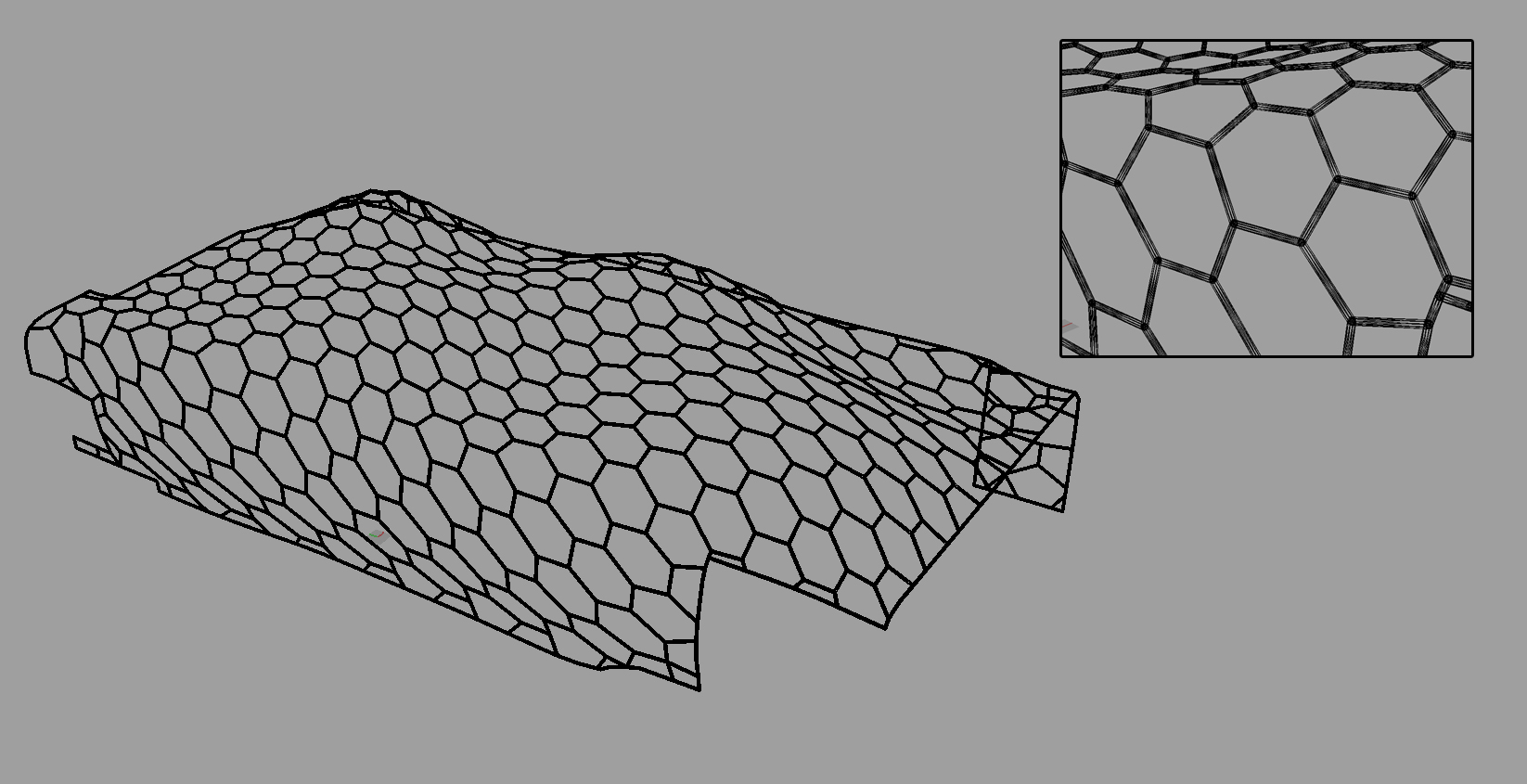 Inizialmente, dato che non è una tesi improntata su questa cosa, andava benissimo il risultato di "Atomo" dopo una corretta approssimazione della mesh importata da rhinoceros ma poi lo stile è cambiato e la struttura stà assumendo l'aspetto di un nido d'ape (o rete da polli :lol: )