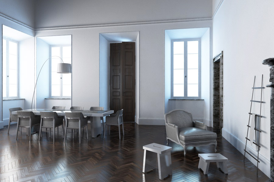 Dunque se il tuo problema è il tempo e non la qualità allora procedi diversamente.Il nostro obbiettivo è la qualità a discapito del tempo,se la tua immagine deve essere solo a scopo rappresentativo per far capire ad un cliente come viene la sua casa allora va benissimo così,non stare a scervellarti per niente.Questi sono punti di vista naturalmente,ti ricordo che se vuoi una resa reale i tempi si allungano e non esiste nessun escamotage per accorciare la strada