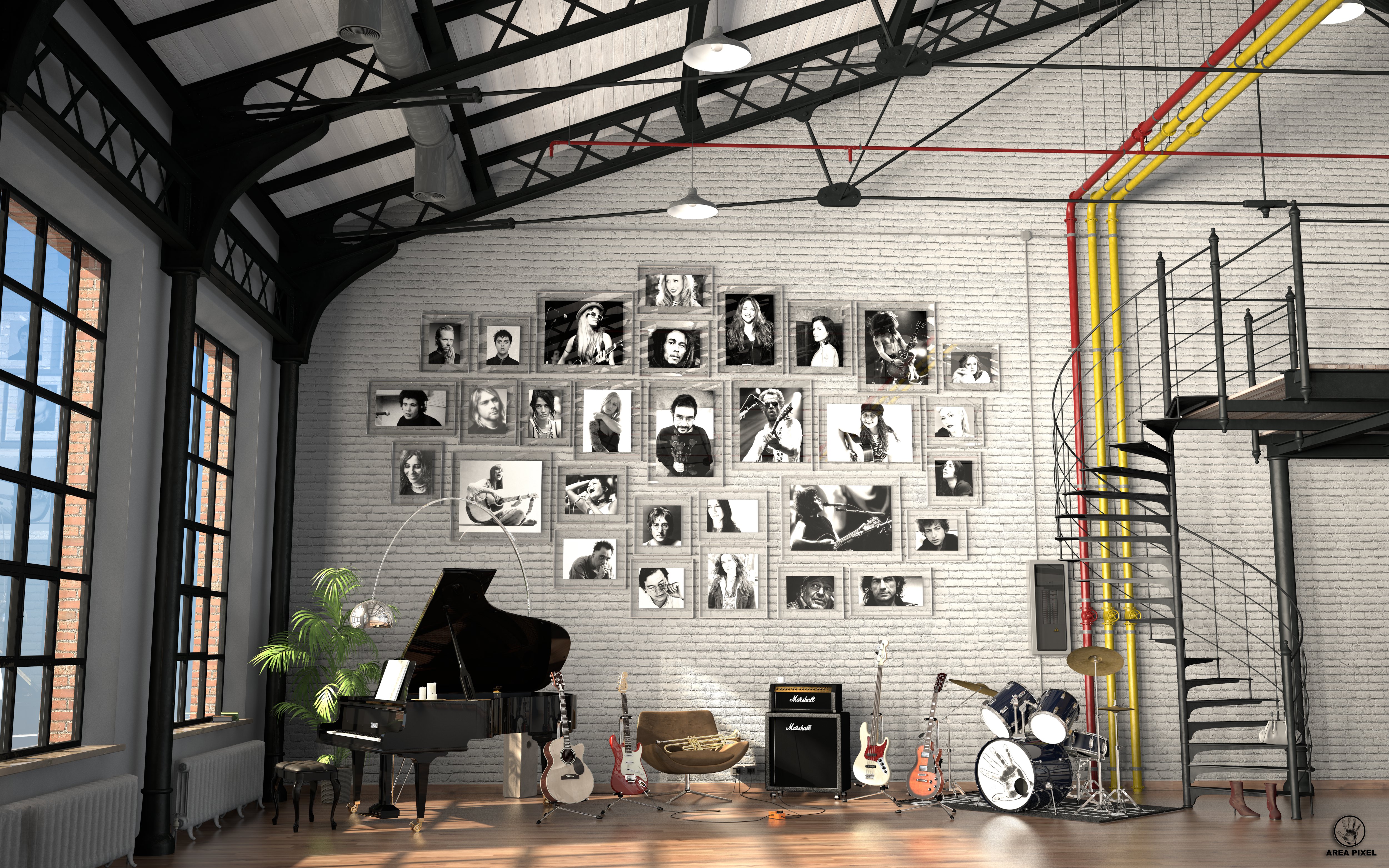 Mi permetto di dare una dritta in base ai miei gusti ..... visto che si parla di un loft e ci son gli strumenti io sinceramente più che la moto e la bionda vorrei vedere degli spartiti magari anche a terra come caduti per un colpo di vendo .... magari una tela a metà nel senso senza un disegno finito ma solo schizzato in un angolo tanto per dare un senso di ecletticità dell'artista , insomma darei più spazio ad un po' di disordine che si sa fa parte degli artisti quasi sempre :) secondo me darebbe un tocco al tutto ... e poi sarei per fare più immagini di dettagli come gli spartiti etc... più che un immagine dove si vede tutto .come già detto da altri ( non ricordo i nomi ) :)