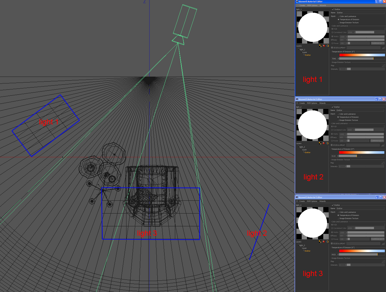 ciao tonno dalle immagini del setup luci vedo che gestisci gli emitter dal valore "temperature of emission", è una scelta presa per comodità, oppure la usi come punto di partenza per poi rifinire su maxwell con il multilight? io di solito lavoro quasi al 90% giocando sui valori di watts ed efficacy, poichè danno un maggiore controllo ed inoltre puoi fare riferimento a dati tecnici presi da bank, ombrelli etc reali IMHO (con questo non alludo al fatto che il valore che utilizzi te non provenga da un ragionamento fisico) però sono curioso di capire la tua scelta dato che la resa è molto buona e tentare di capire come gestisci te la resa degli emiter lavorando su quel tipo di parametro, complimenti ancora per il lavoro, seguo interessato