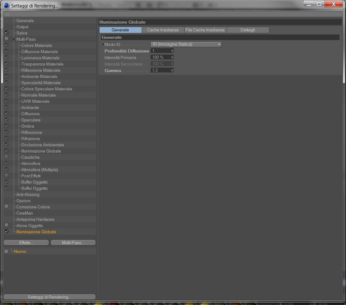 direi di no!... ma a tutti i modi posto i parametri di render.... pensando anche che il casino lo possa aver fatto il multipass.. lo ho disabilitato.... ma nulla.... boh?? io inizio a non capirci nulla!!