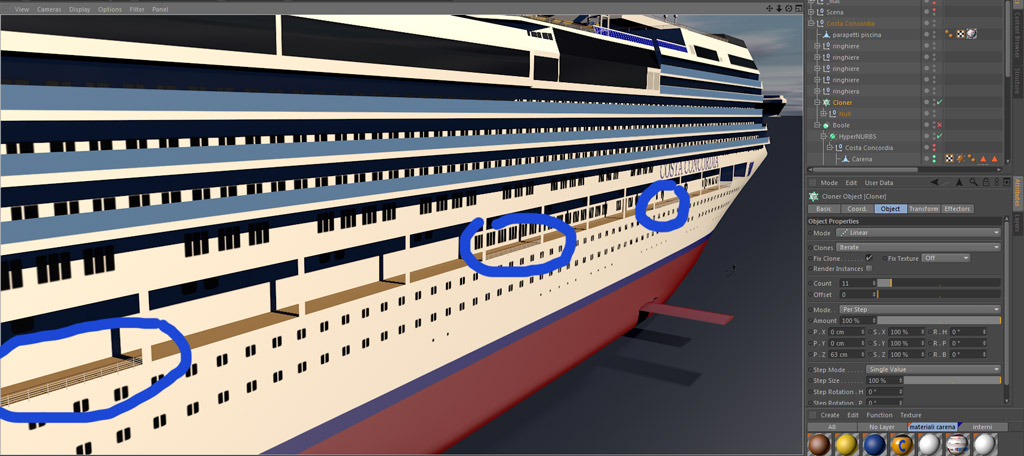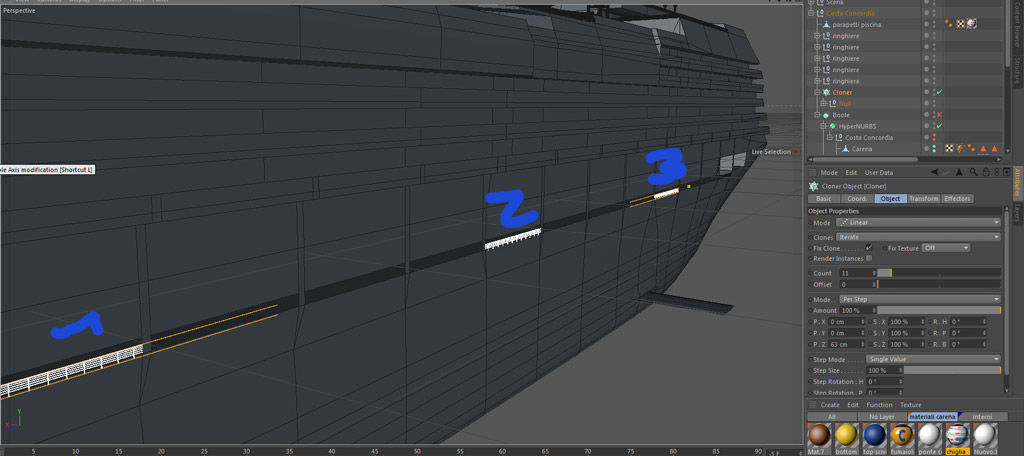 oggi sto litigando con cloner object. Quello che devo fare infatti e clonare una ringhiera a intervalli regolari di tot cm.