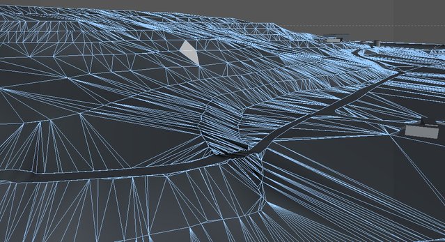 questa è l'immagine complessiva delle mesh, come potete vedere, c'è una mesh unica che dovrebbe rappresentare questa strada che attraversa il territorio...ma come potete vedere dalla immagine che segue,