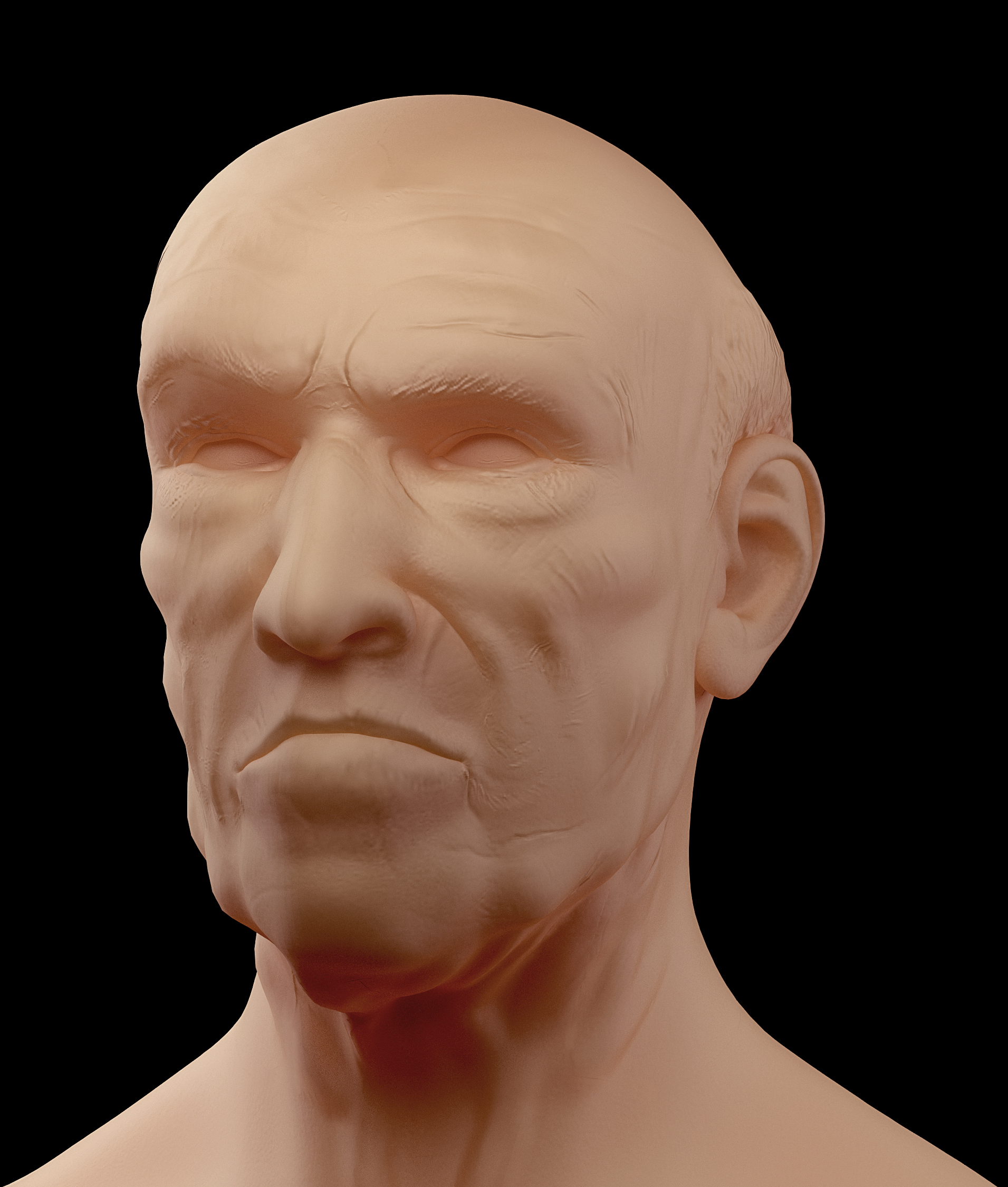 sì, diciamo che non so neanche se l'iter che ho usato è quello giusto, in realtà si potrebbe modellare da zero direttamente in z, ed è esattamente come si procederebbe con un blocco d'argilla, ma io ho esportato il volto da c4d in obj, mooolto abbozzato e senza hyper, poi una volta importato in z l'ho suddiviso ed ho cominciato a scolpire le espressioni, un pò alla buona, e piano piano ho fatto tutto, capelli, rughe pori etc...in realtà, dovrei riesportare le mappe xkè ho già fatto altre modifiche, ma ora sn pieno col lavoro, quindi mi tocca rimandare... :(