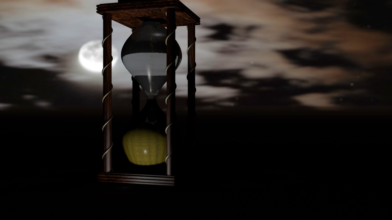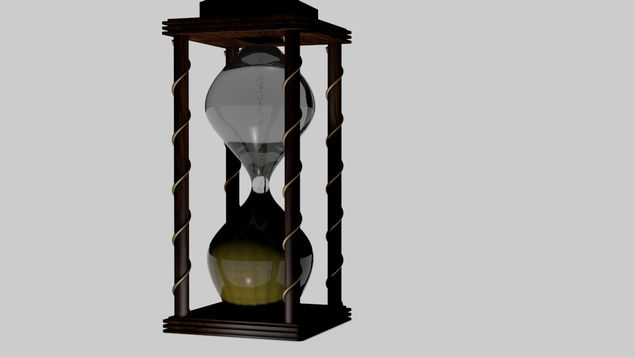 Adesso ho tolto diciamo la sabbi , e ho modificato la forma della clessidra per capire se secondo voi va meglio un po' più allungata , e ho anche abbassato la rifrazione del vetro a 1.2 ... prima era 1.59 mi sembra . Attendo commenti .