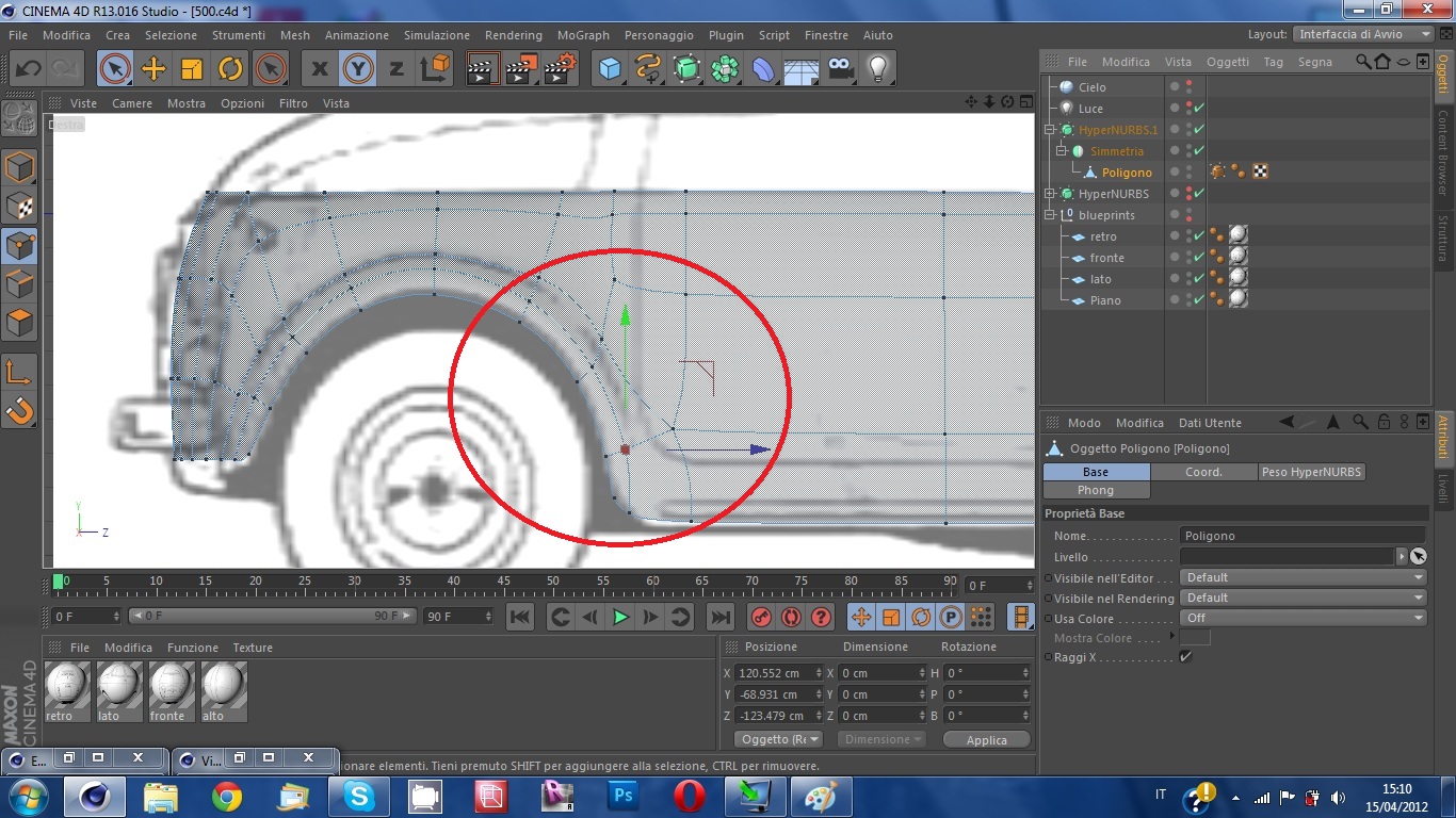seguendo il tutoria e tenendo nuoni i punti che metteva, usavo pesa hypernurbs, e tagliando mi esce un casotto.