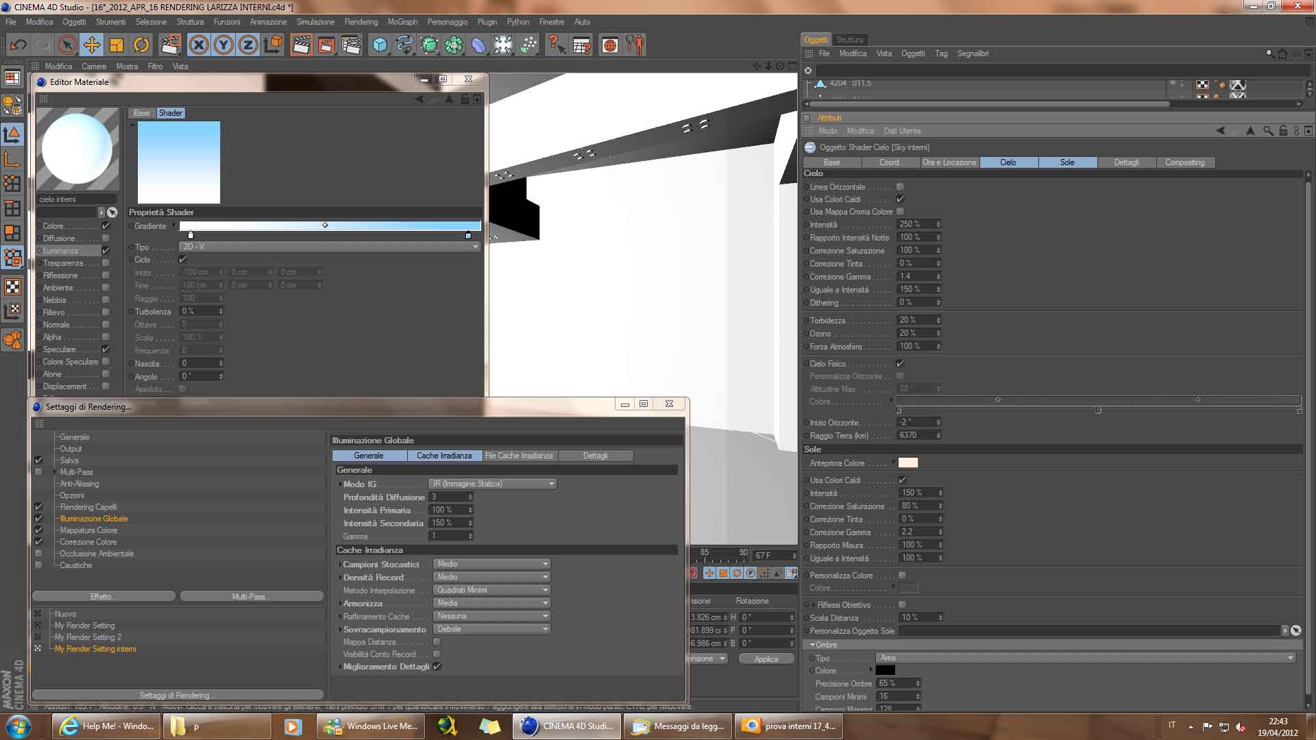 ho impostato la mia prima scena per un rendering di interni.