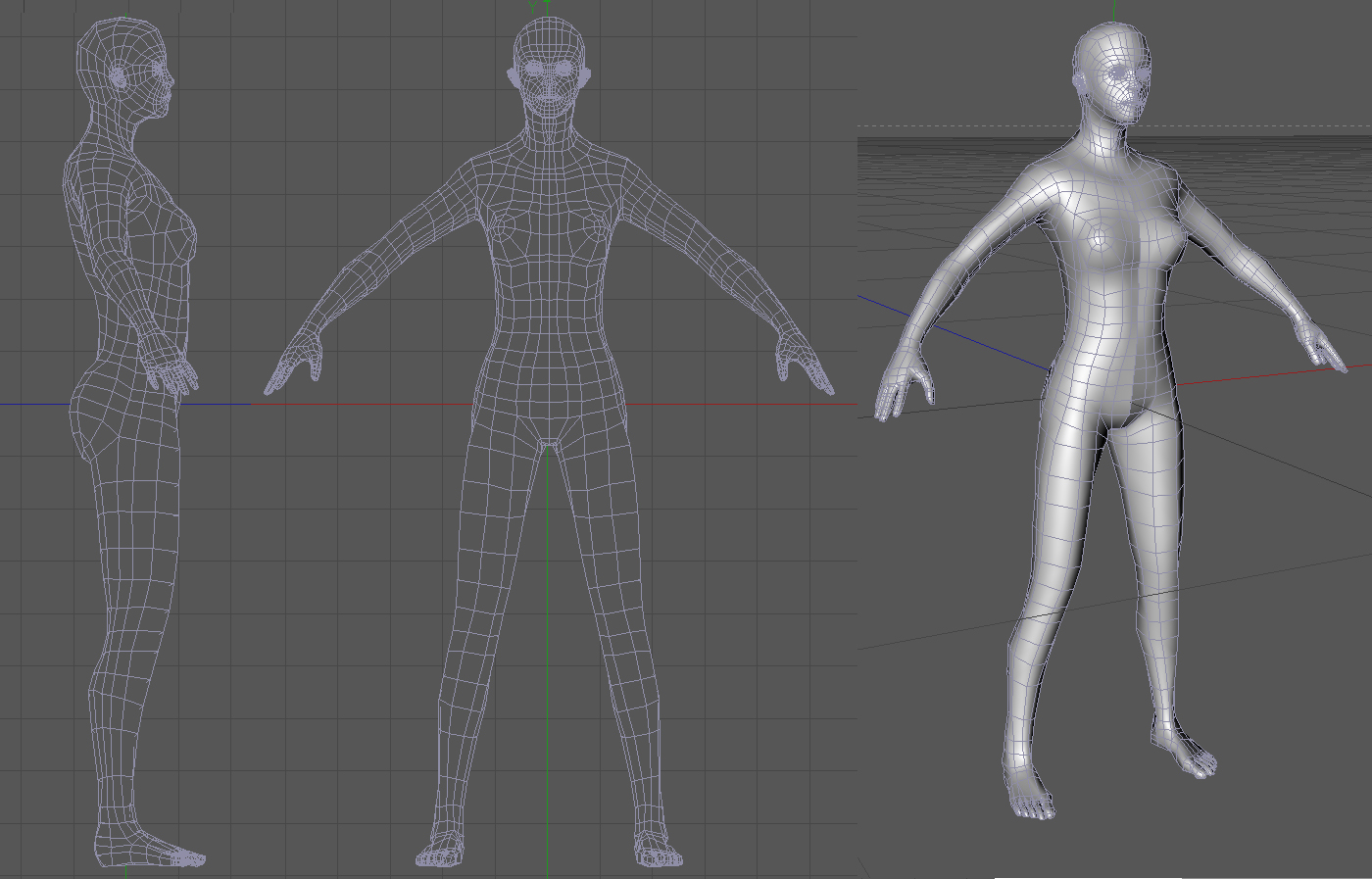 mostro quella che previa qualche sistemazione - soprattutto concentrata nelle proporzioni e nell'eliminazione dei triangoli rimasti - sarà la base-mesh per un nuovo personaggio femminile.