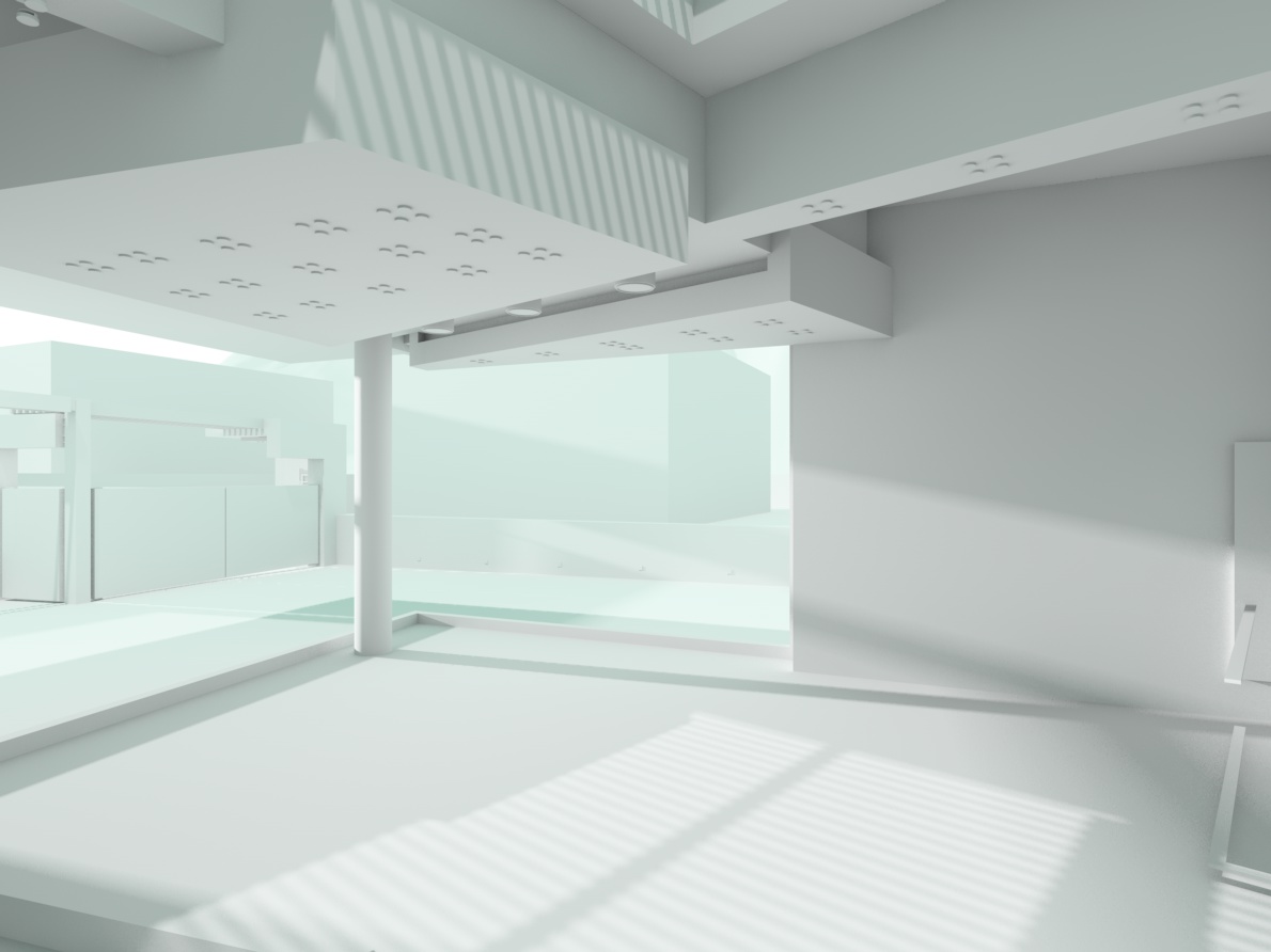 Luci area (interne, in corrispondenza delle vetrate e di dimensioni analoghe alle vetrate stesse) : intensità 100, ombra area