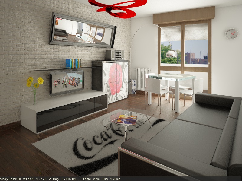 Sinceramente, siccome me lo sono un pò inventato, l'arredamento e i colori li ho messi un pò così, non pensandoci troppo, anche perchè sono soltanto un geometrino che vuole cimentarsi in questo magnifico campo del 3D, riuscendo a divertirsi un un pò tra un lavoro e l'altro, in modo da presentare i vari lavoretti decentemente ai clienti, invogliandoli di più.