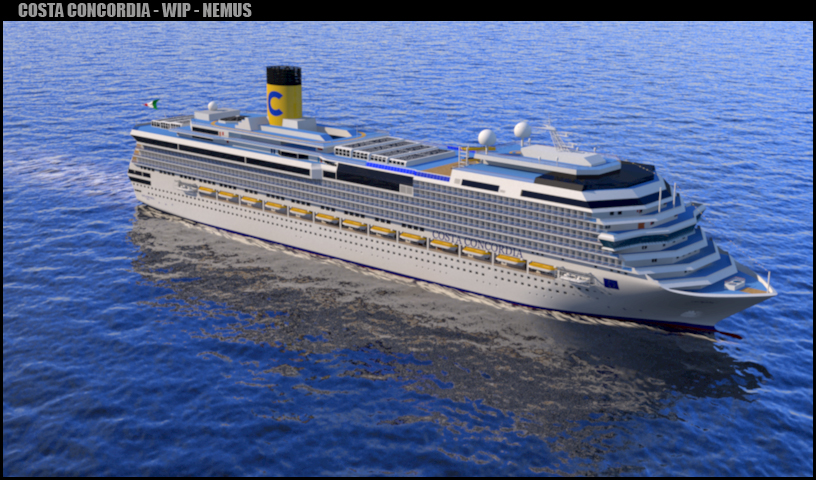 Ho aggiustato un po' di cose al modello della nave, ma soprattutto ho rifatto da zero l'acqua: ora è in displacement, con buona pace dei tempi di render.
