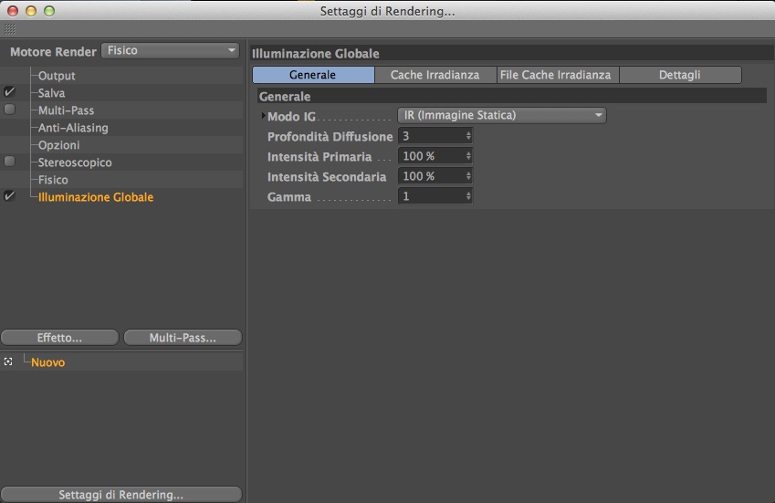 sto usando il motore fisico (non indiretta perché nonno una macchina potente :-(( ) e infine la IG.