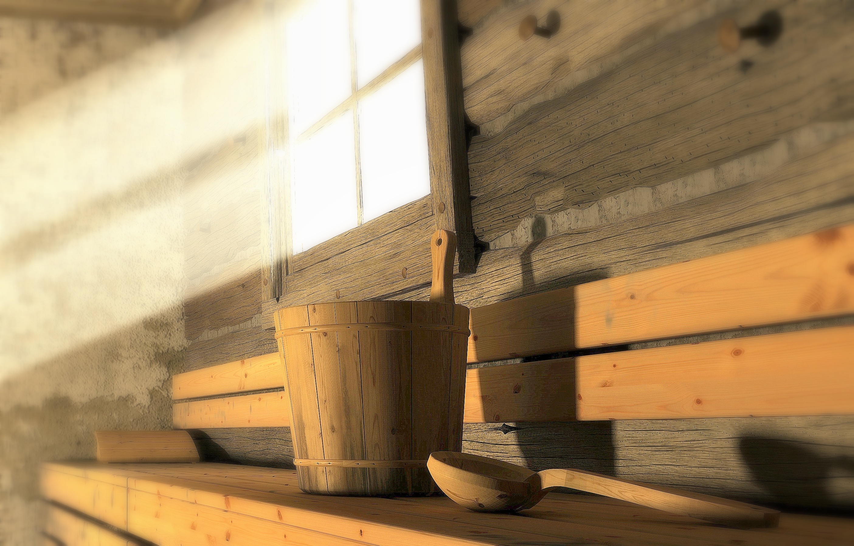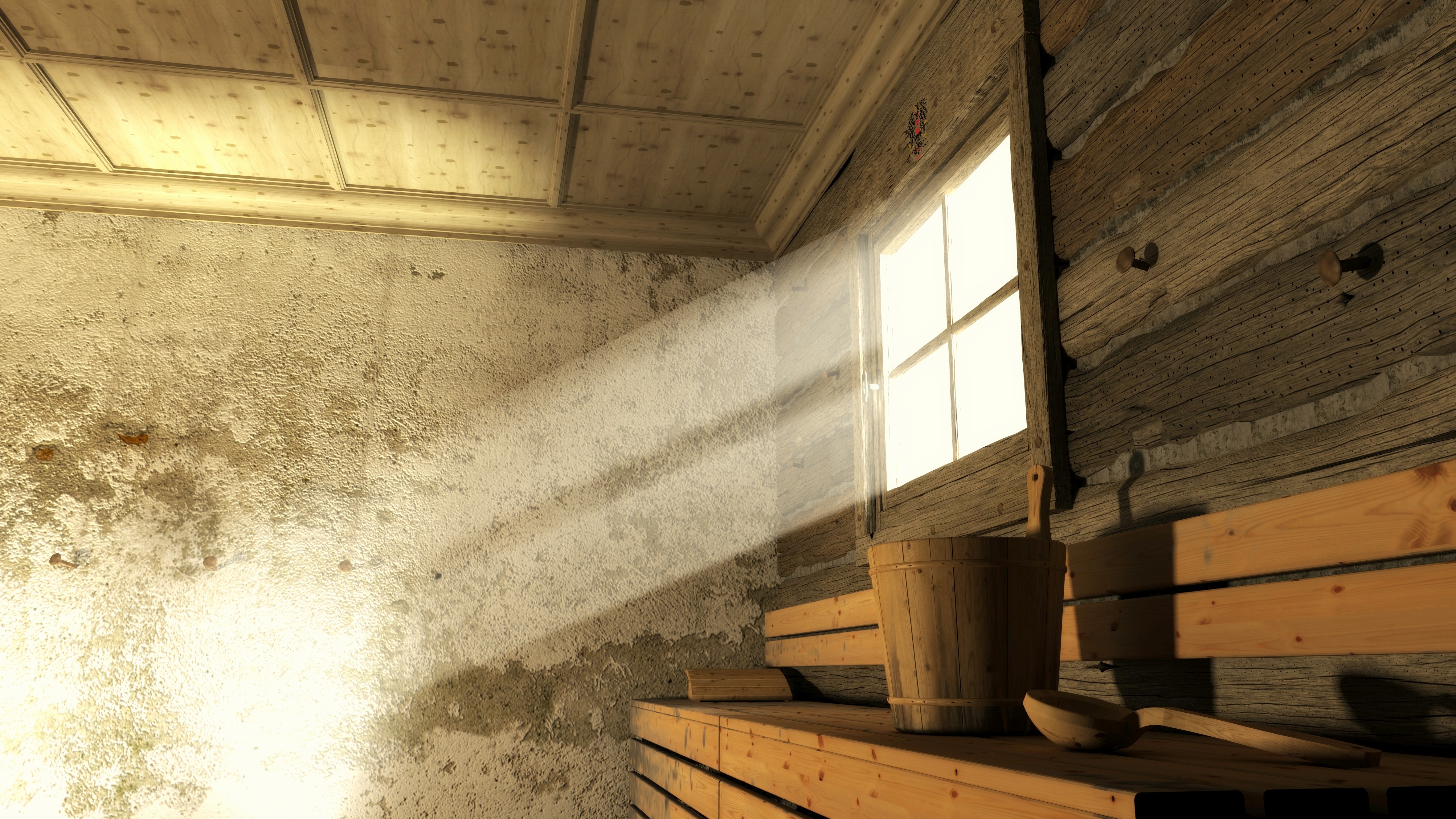 cambia tutto se invece volevi dare un'immagine di una sauna vecchia ed in disuso pero dovresti caratterizzarla meglio.... alzare un po di tavole mettere il recipiente rotto , polvere e immondizia in giro ecc.