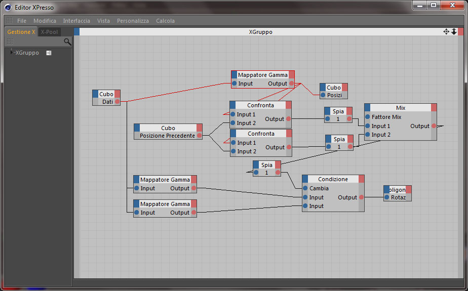 Considera una cosa....l'animazione che hai visto nella pubblicità non può essere stata fatta solo con xpresso....anzi non so nemmeno se lo hanno aperto xpresso, 99/100 hanno messo dentro uno script tag in python o coffee che va a leggere un video e tramite un filtro trasforma il colore rgb di ogni fotogramma in rotazioni delle bielle....il tutto passando come minimo da qualche libreria grafica che fa i threshold dei colori etc etc almeno questo è quello che farei ioabe3d wrote: ...Adesso vado, ma mi ci metterò sù appena torno, mi studio bene il tuo metodo e ti faccio sapere... se mi supporti, penso che alla fine, sta cavolo di animazione riusciremo a tirarla fuori. Premetto che non si tratta di un lavoro, è pura bramosità.