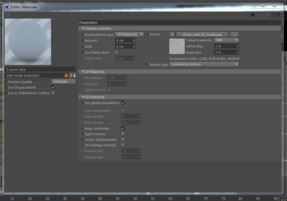 Fatto questo inserire i due materili nell'oggetto PRIMA il displace poi l'advanced, tutti e due in porezione cubica (logicamente con le stesse scale.