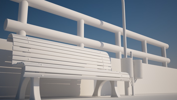 Aaallora... 8-) Guarda, fossi in te cercherei, come anche ti è stato suggerito da altri utenti, di far risaltare le ombre. Perché non provi ad abbassare l'altezza del sole? Prova a metterlo verso le 6 del pomeriggio... :) Poi, le aste della panchina sono troppo attaccate, ma soprattutto troppo regolari.. Prova a distanziarle di più l'una dall'altra e a farne qualcuna storta. E magari a modellare le viti che le tengono attaccate alla struttura... Poi, così strutturata la scena, sembra una panchina su un lungomare, quindi non so fino a che punto l'erba ci azzecca. Farei meglio una bella pavimentazione, così avrei anche da lavorare su texture che potrebbero dare un'idea di realisticità in più rispetto a quello che sarebbe il risultato con un manto d'erba... :)