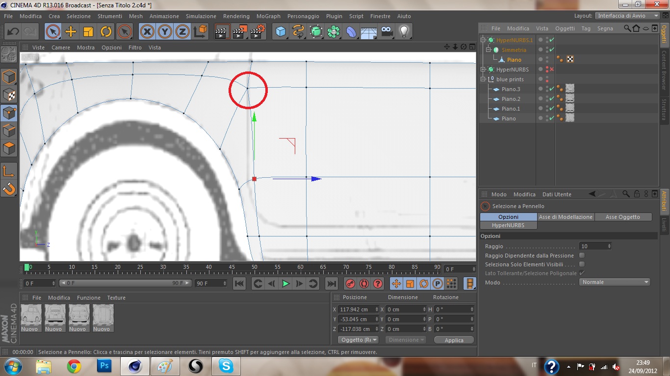 il proble dello spostamento del punto dovuto all'hypernurbs sembra risolto...e quindi non mi si crea più quel solco odioso che nn riuscivo a togliere, circa all'altezza del parafango...