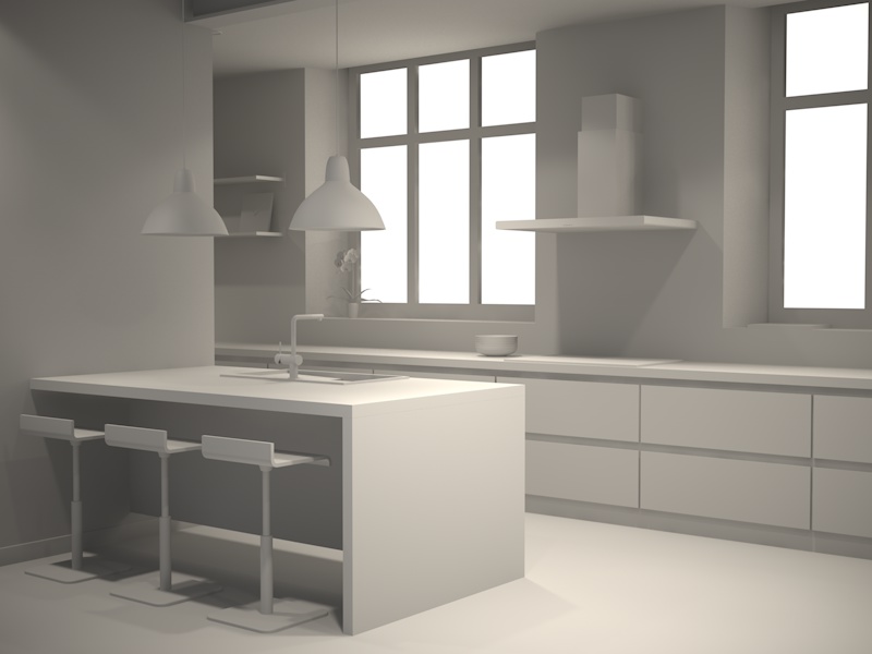 Ho allegato un' immagine del mio interno renderizzata senza materiali, ho modellato tutto io tranne i fiori, e una vista top in cui vedete le luci utilizzate: