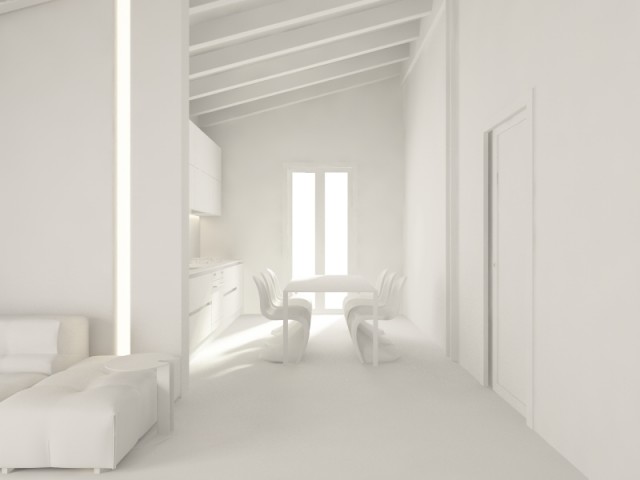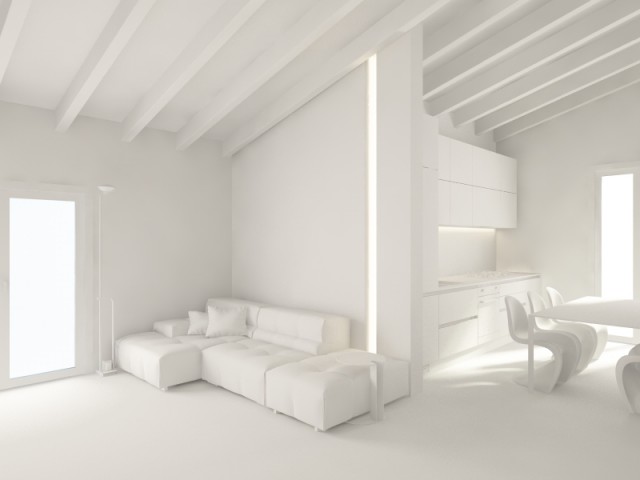 L'illuminazione di questo ambiente è ottenuta molto semplicemente con due luci area di stessa intensità e tonalità alle apertura e sole e cielo fisici... color mapping exponential e camera fisica... una cosa più o meno semplice... per quanto riguarda vray o c4d... io il motore fisico di c4d non l'ho mai utilizzato ma ho visto dei lavori veramente ottimi come del resto con vray ho visto dei lavori veramente pessimi... l'importante sta tutto nel saper settare correttamente i vari parametri...