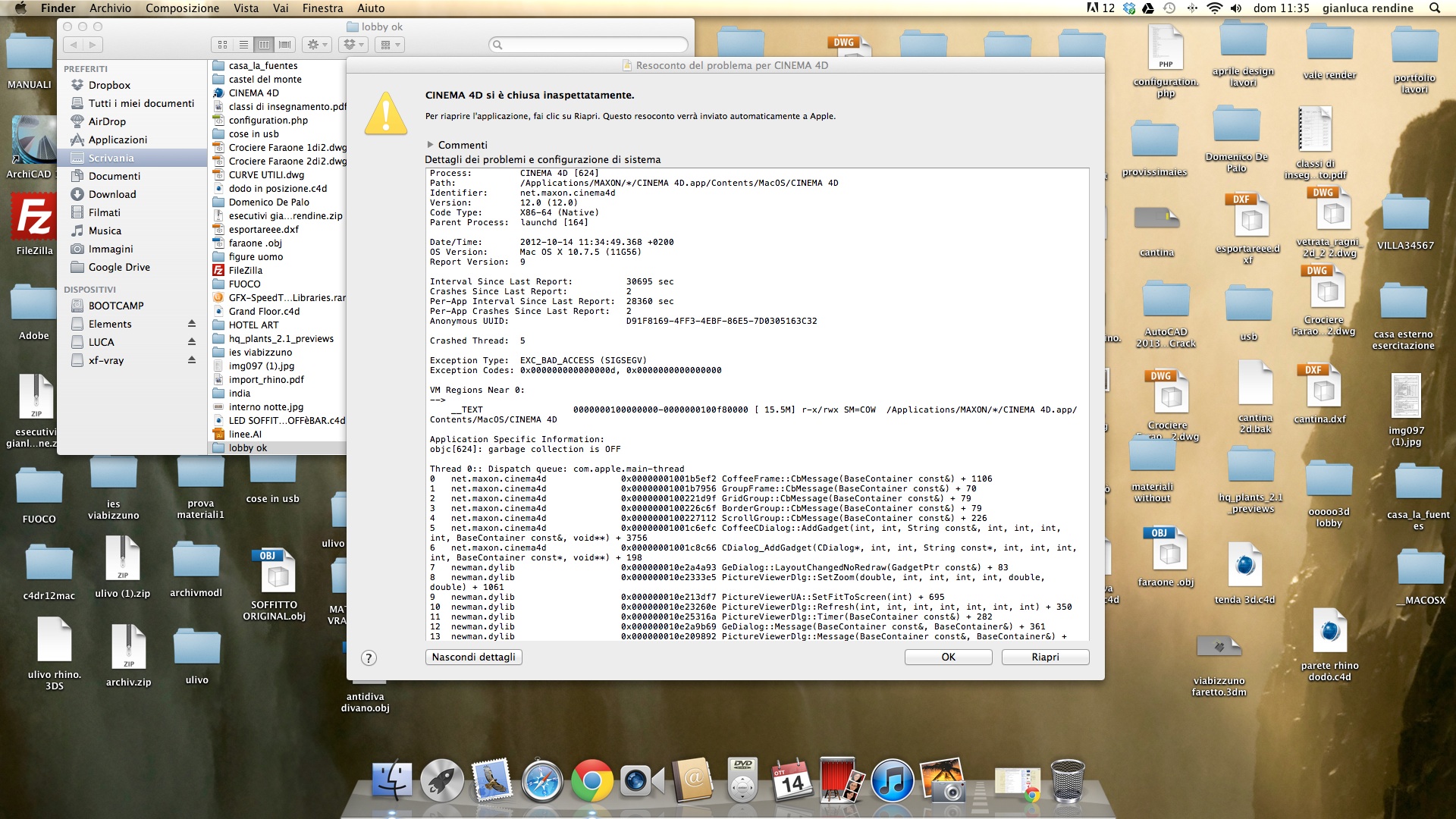 Errore Applicazione! E' possibile trovare ulteriori informazioni sotto a '/Users/gianlucarendine/Library/Preferences/MAXON/CINEMA 4D R12_C333CB6C/_bugreports/_BugReport.txt'!