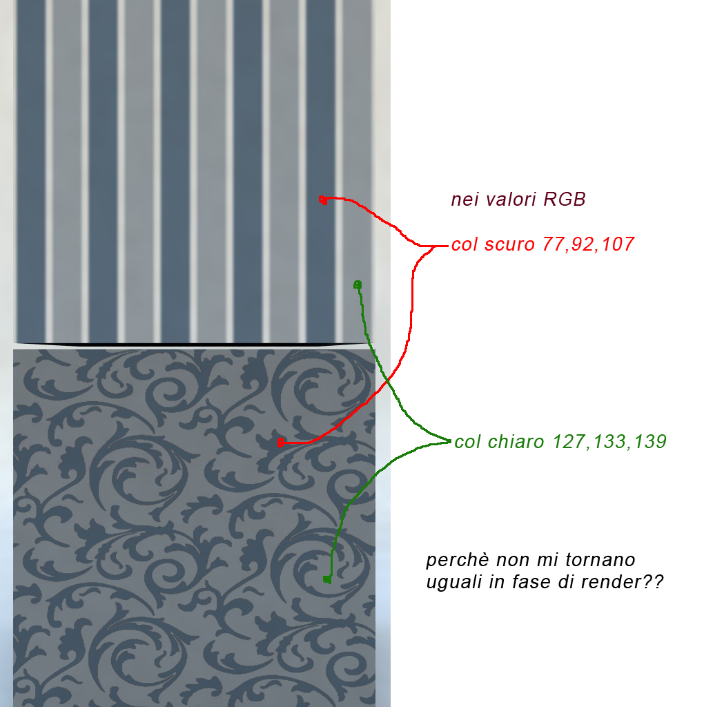 non sono sicurissimo di aver capito.. in pratica il grigio (127,133,139) del diffuse 1 dovrebbe essere uguale al colore 2 del ripeti ?