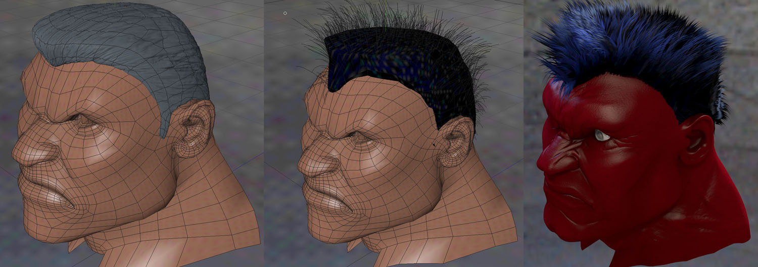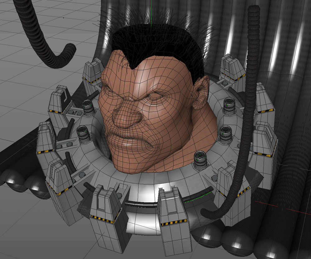 Inizialmente ho splittato i poligoni della testa per ottenere una calotta, poi estrusa e poi scolpita con la stessa logica del volto.
