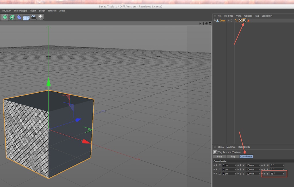 Ruotare una texture assegnata ad un oggetto
