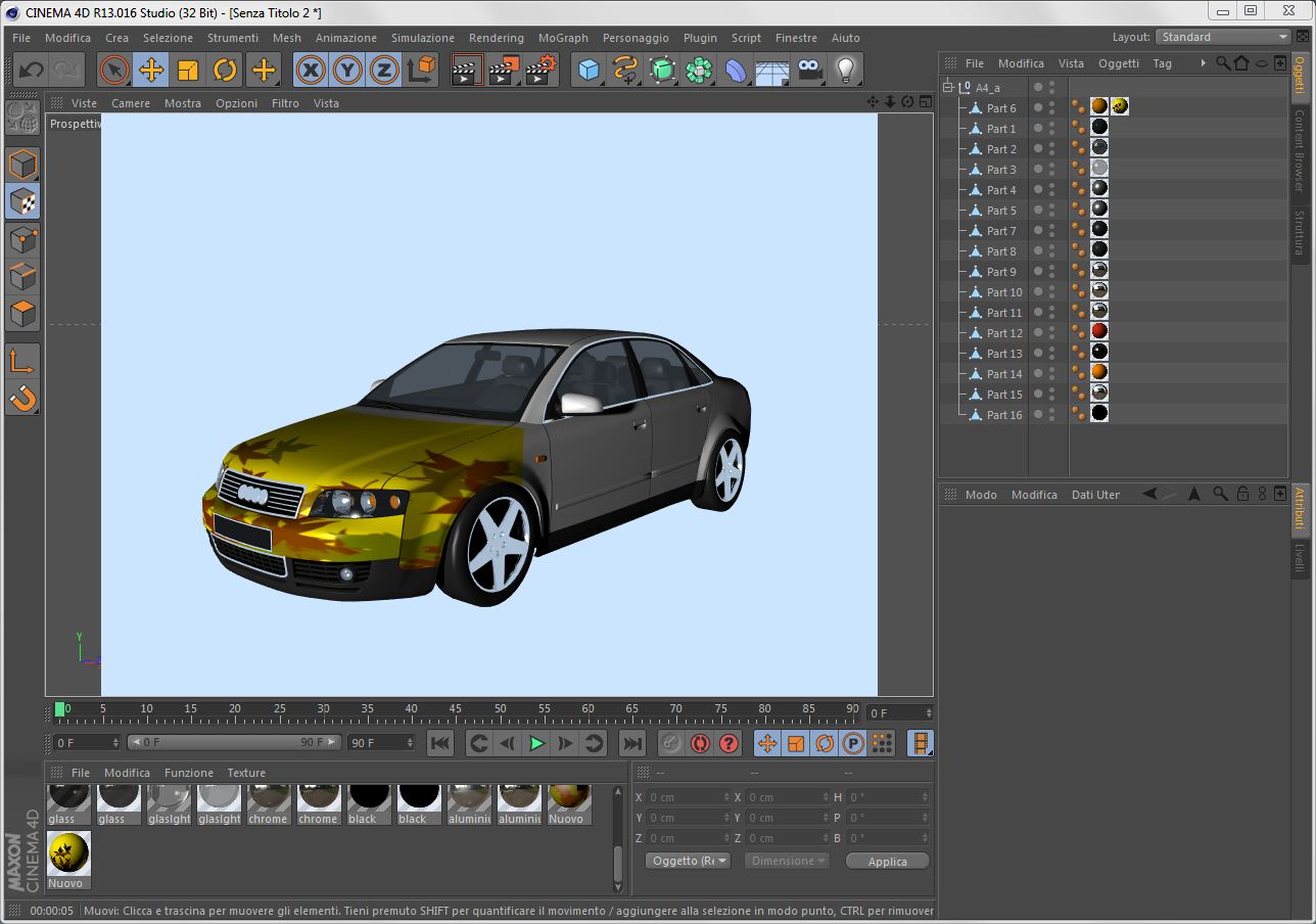 Un esempio più concreto è rivestire solo la parte frontale di un auto come in figura: E per arrivarci ho impostato e posizionato il tutto così: