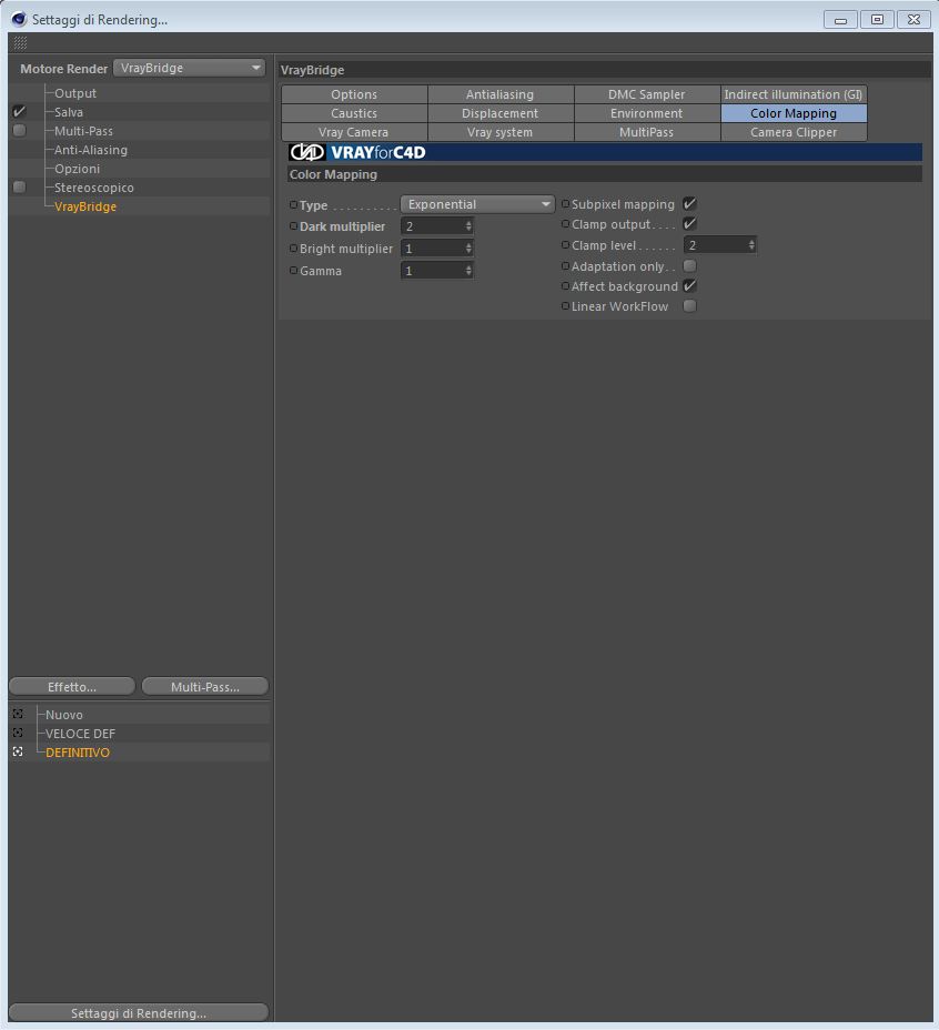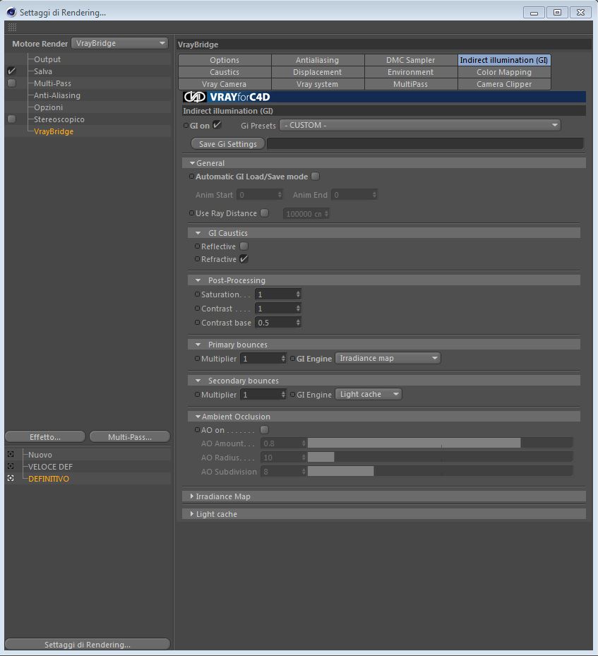 Ecco di seguito le impostazioni come mi avete chiesto...