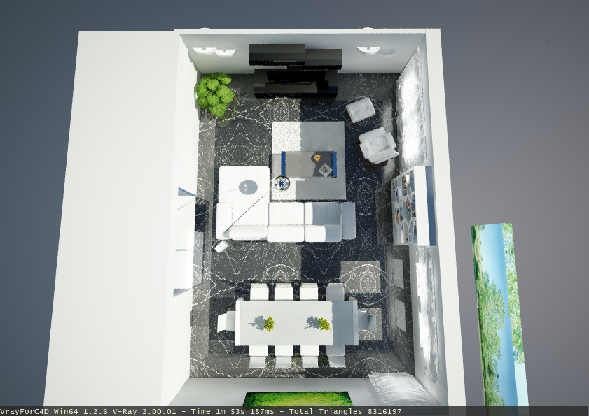 Stanza reale con misure da progetto - pavimento fotografato texturizzato e riprodotto da originale - arredamento consigliato da me all'architetto faretti TROPPI..... imposti da lui....