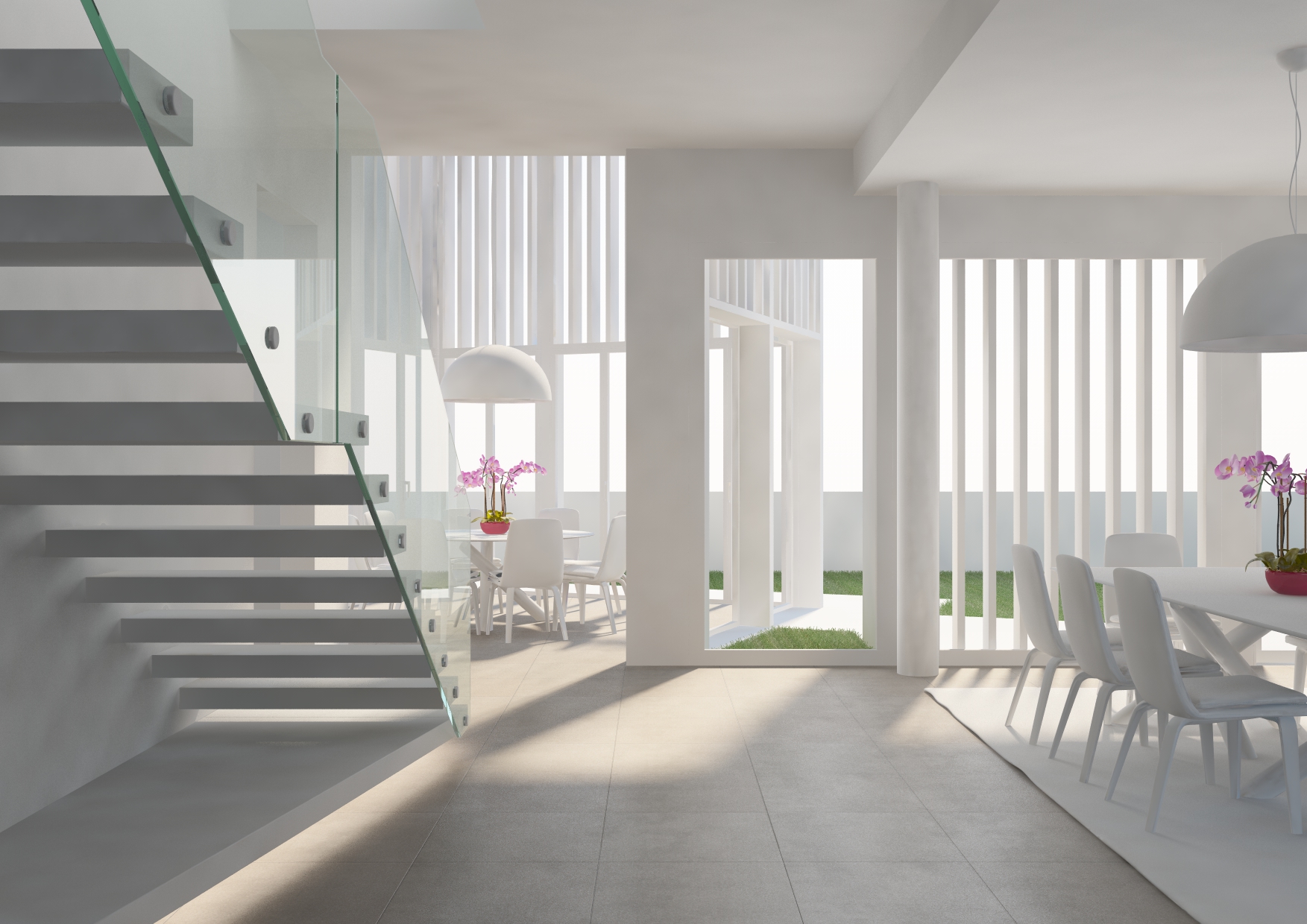 Per il discorso efficienza energetica, il freddo non è un problema perchè dove verrà realizzata questa villa in inverno ci scende massimo a 20°, il problema sarà l'estate, ma sicuramente le varie aperture verranno schermate con dei tendaggi che, per motivo di tempo, evito di mettere nel rendering. 8-)
