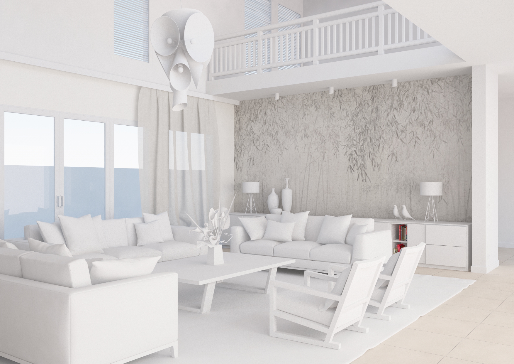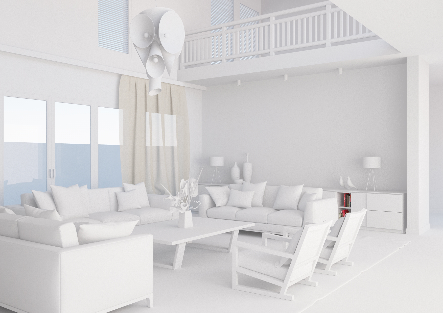 Il tutto è illuminato da una luce infinita senza sole, solo cielo, e una luce area posta in prossimità delle porte finestre alle spalle delle fotocamere. Quest'ultime sono camere fisiche. Settaggi IM+LC, exponential lwf. A voi critiche e commenti.