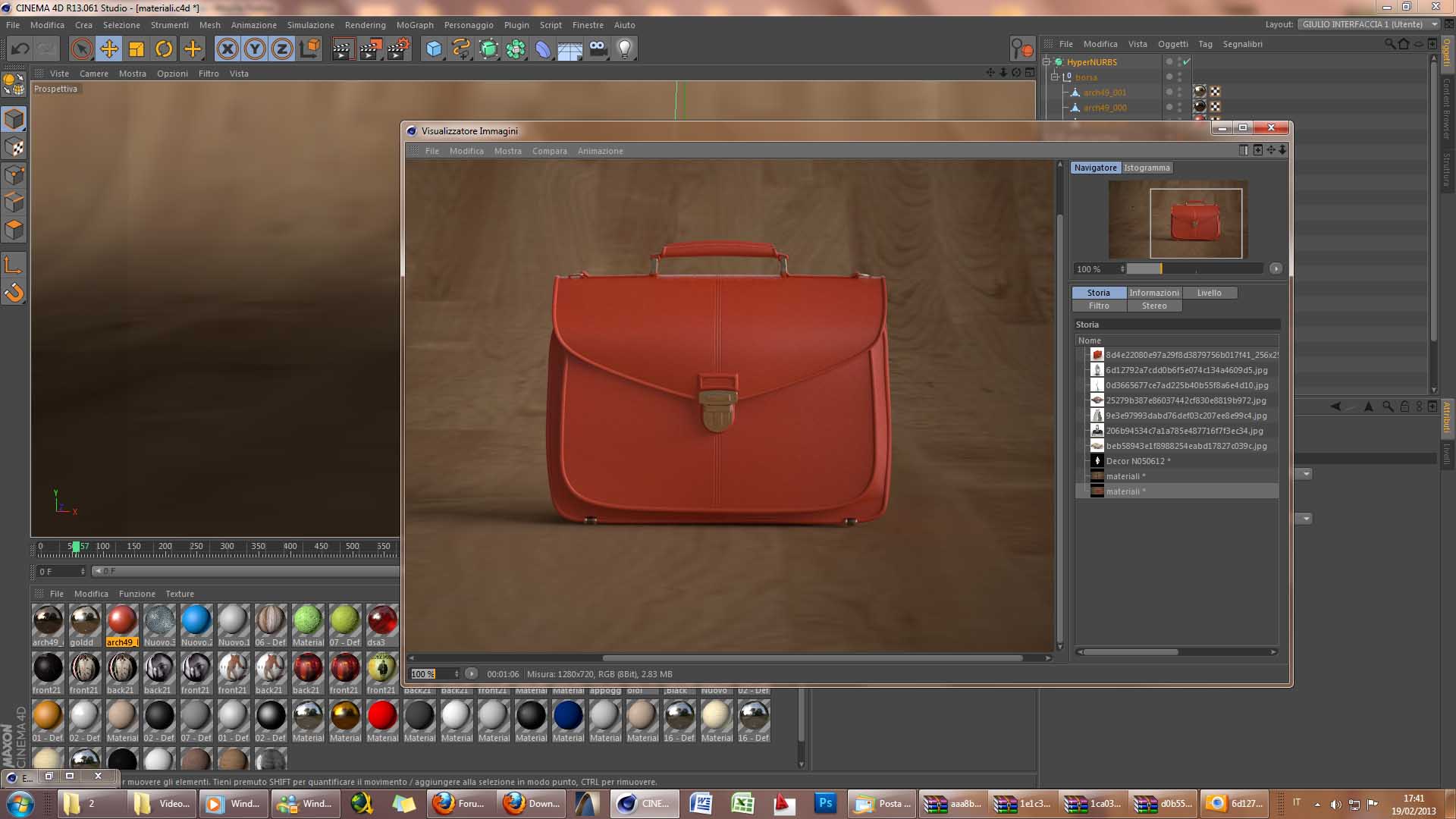 ho scaricato un modello di borsa da archive3d (secondo i suggerimenti di hurricane!), migliorato un po' nella modellazione delle superfici curve con l'hn e l'ho texturizzando seguendo le indicazioni delle videopillole del sito.