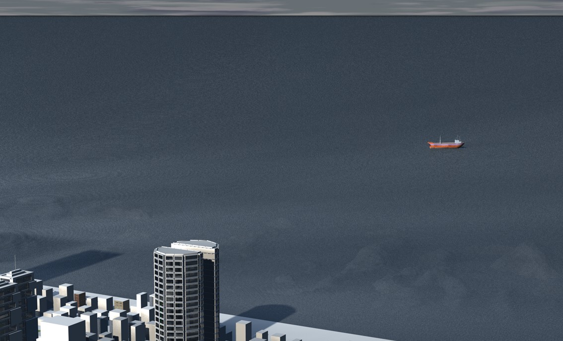 per la profondità del mare, io la farei in photoshop, creando un livello di gradiente che si scurisce dalla riva verso il largo, fondendolo in modo da scurire il livello esistente (il render).