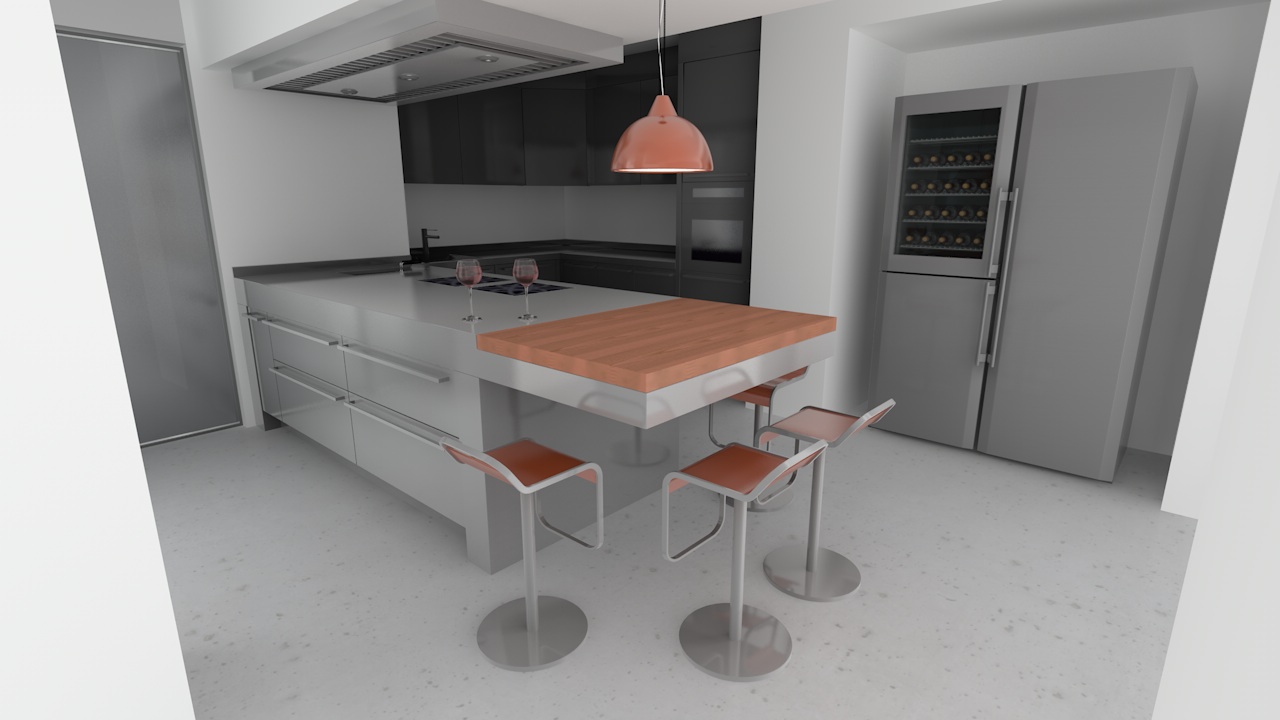Vi posto due foto una un po' più luminosa l'altra meno. A parte i mille errori che potrete trovare, non capisco perchè infondo dove ci sono i pensili non arriva la luce. Qualche idea? ho provato anche con la mappatura colore ma non se ne viene fuori. Grazie