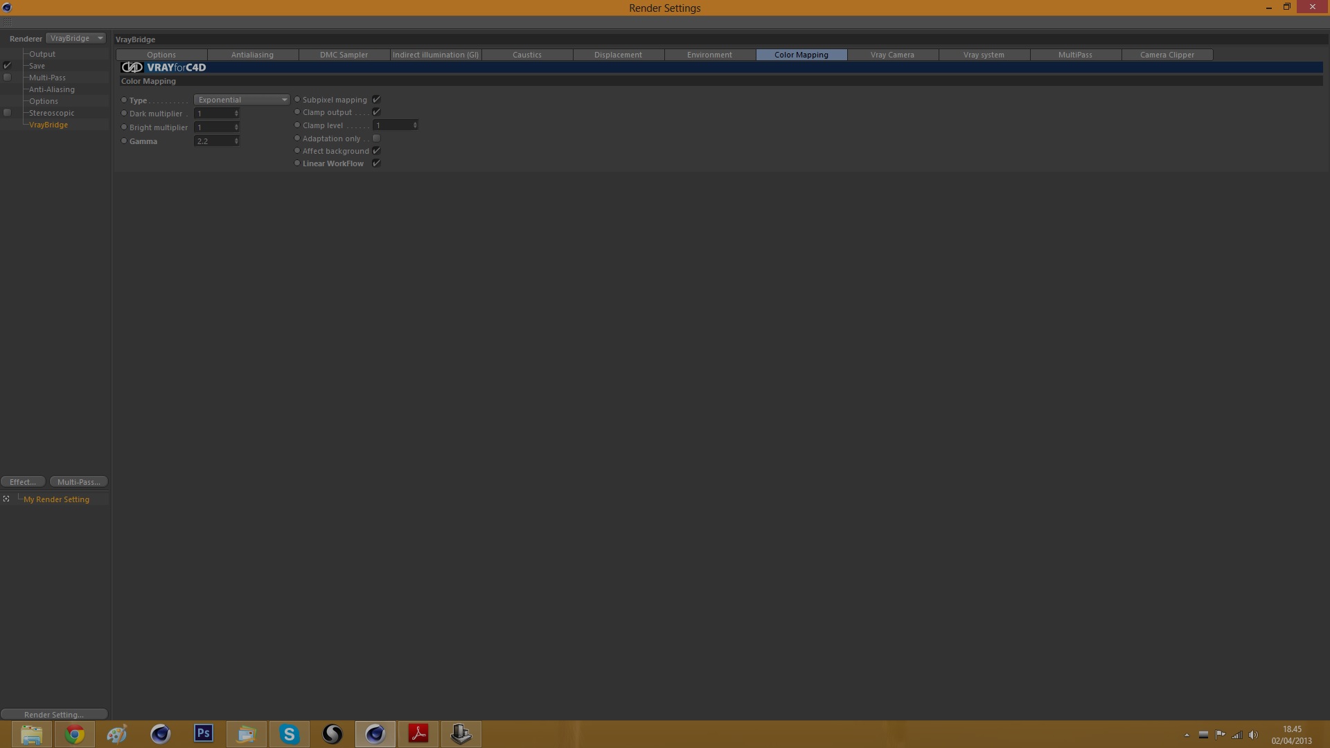 ah, verifica anche che nel vray bridge il color mapping sia così: