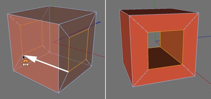 Non dovevi scindere; una volta tagliato l'ingombro dell'apertura dai il comando ponte tra il poligono anteriore e posteriore della stessa (avendoli selezionati prima entrambe) e ti viene la parete bucata e piena ai lati al tempo stesso!