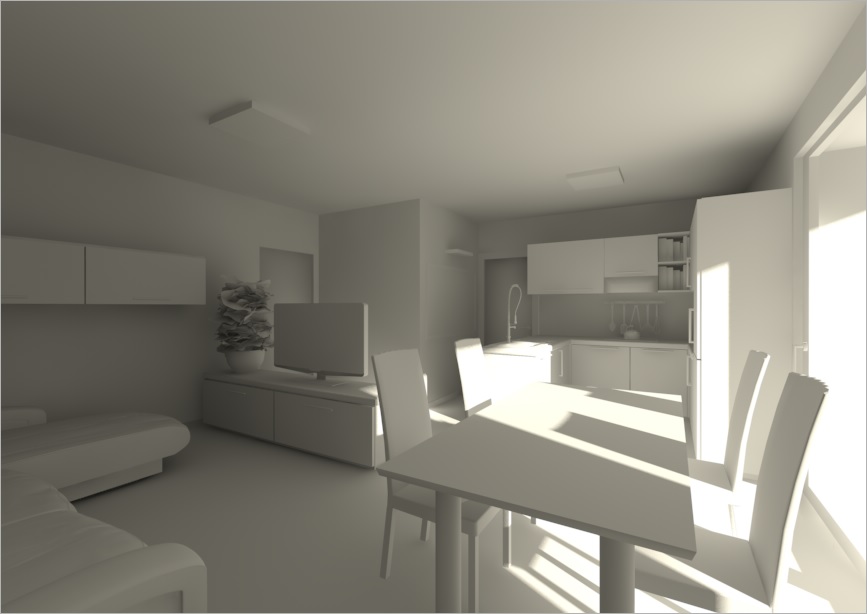 Secondo me per questa scena, correttamente impostate, possono tranquillamente bastare una luce infinità per simulare il sole e una luce area, grande come la porta finestra sulla destra, per supportare la luce infinità ed ottenere il grado di illuminazione che preferisci. Azzarderei la luce sole giallina tipo sole e la luce area azzurrina tipo cielo. ;)