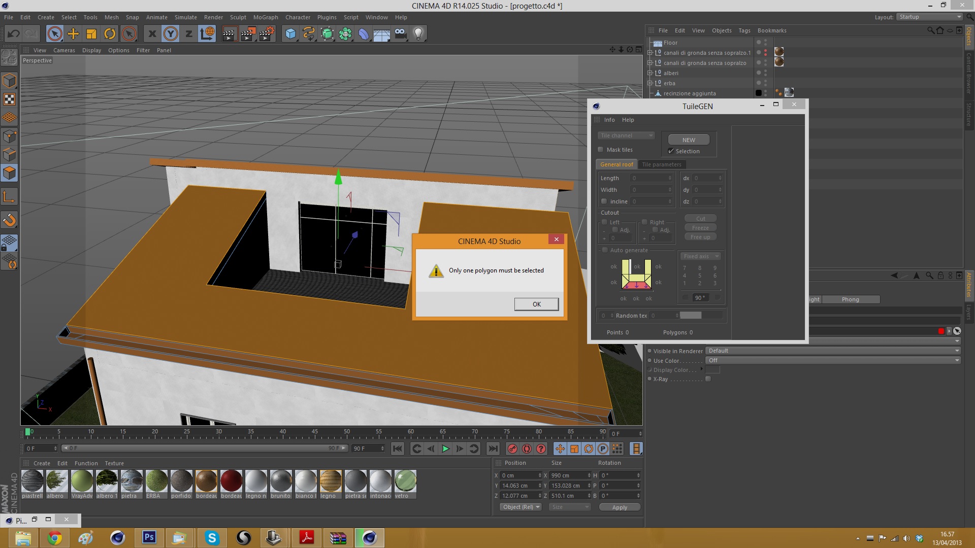 ossia, dopo aver selezionato la faccia a cui dovrei applicare i coppi, e dopo aver cliccato "new" mi esce questo messaggio di errore: