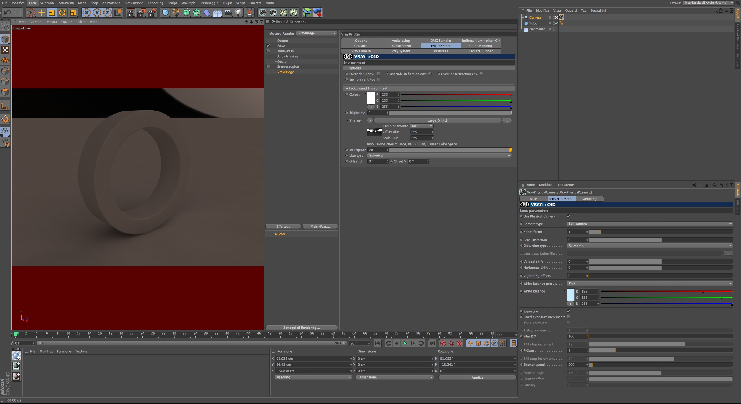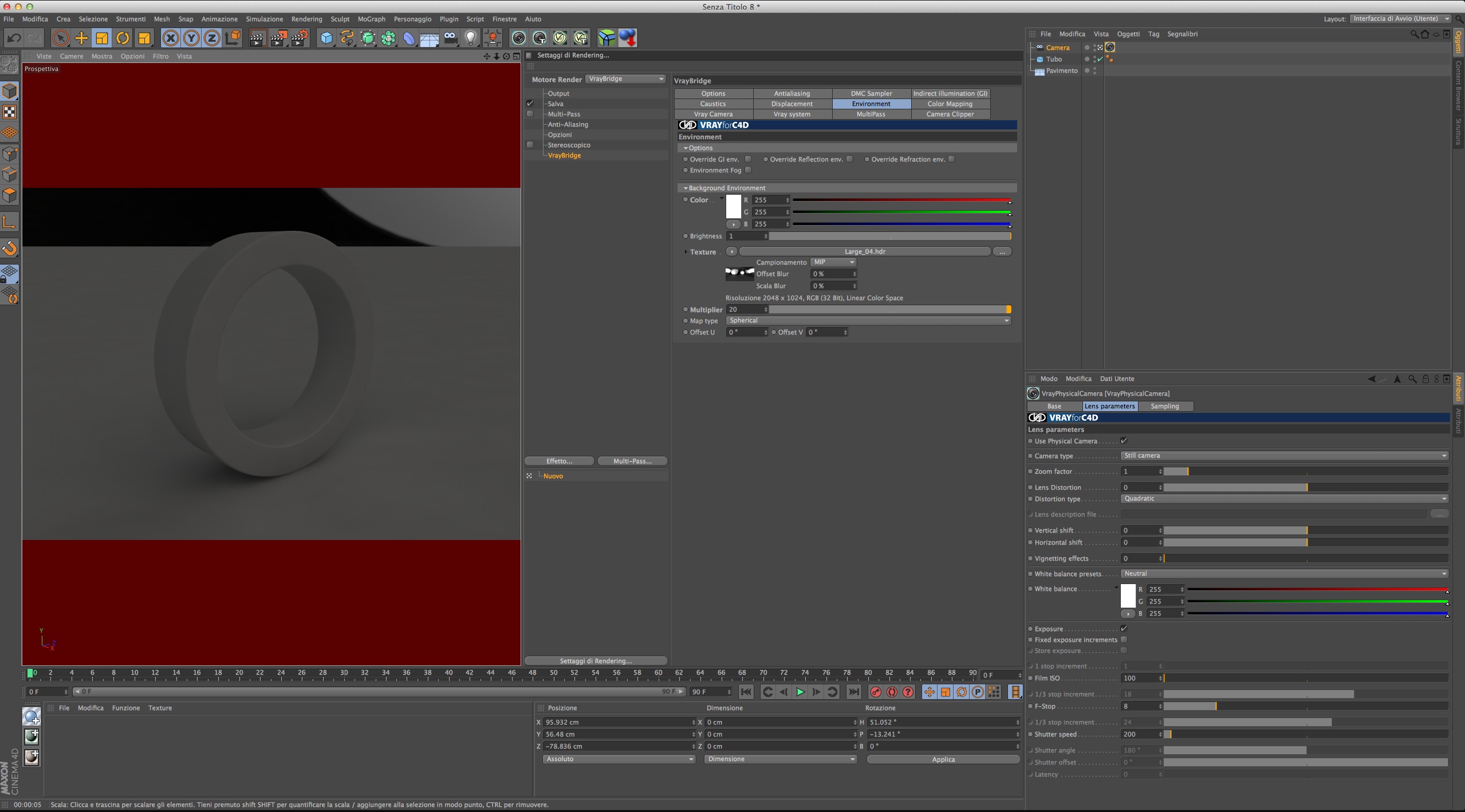 Allora, devo renderizzare un oggetto. Cinema 4D R13, VrayBridge, un pavimento e un piano usato come pannello di sfondo. Quando carico una hdri (una serie di luci da set fotografico bianco e nero) nell'environment di Vray, dandogli un multiplier di 20, sia in background che in GI Environment, e lancio il render, l'oggetto appare con delle sfumature rosse, come se riflettesse qualcosa di rosso. Che però nella scena non c'è!
