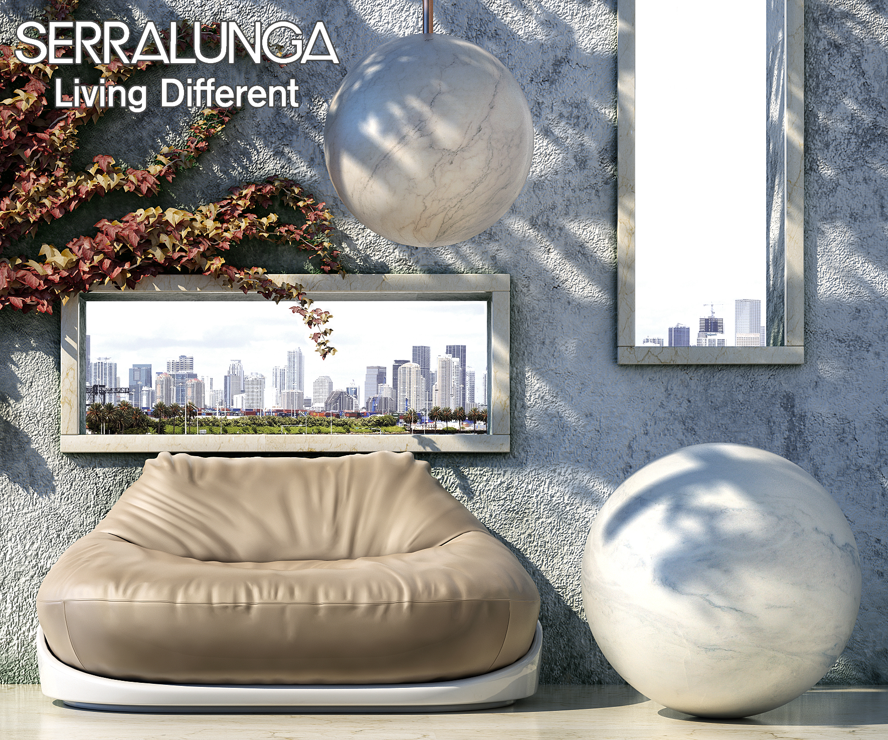 Però nella realtà l'effetto che volevo ottenere o che si vuole ottenere architettonicamente è quello di avere dei "quadri dinamici", cioè che cambiano sempre in base alla posizione da cui si guarda, (ecco anche perchè i listelli di marmo che formano le cornici intorno alle aperture)...quindi la tua osservazione è comunque giusta