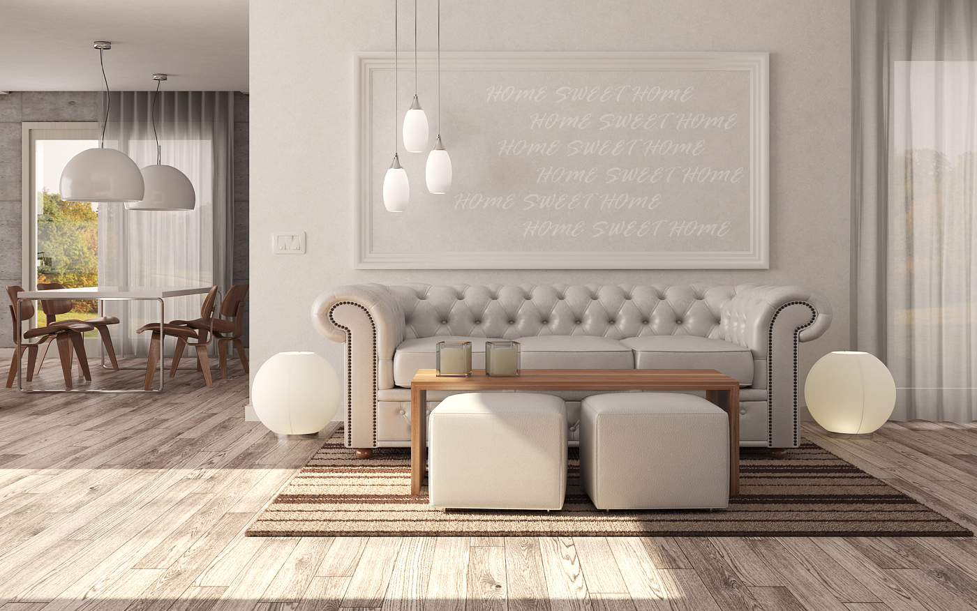 - gli interruttori di fianco al divano sembrano incompleti. Capisco che vuoi fare una scena "asettica" tutta bianca, però quelli sembrano proprio senza materiali, quindi risultano un po' finti.