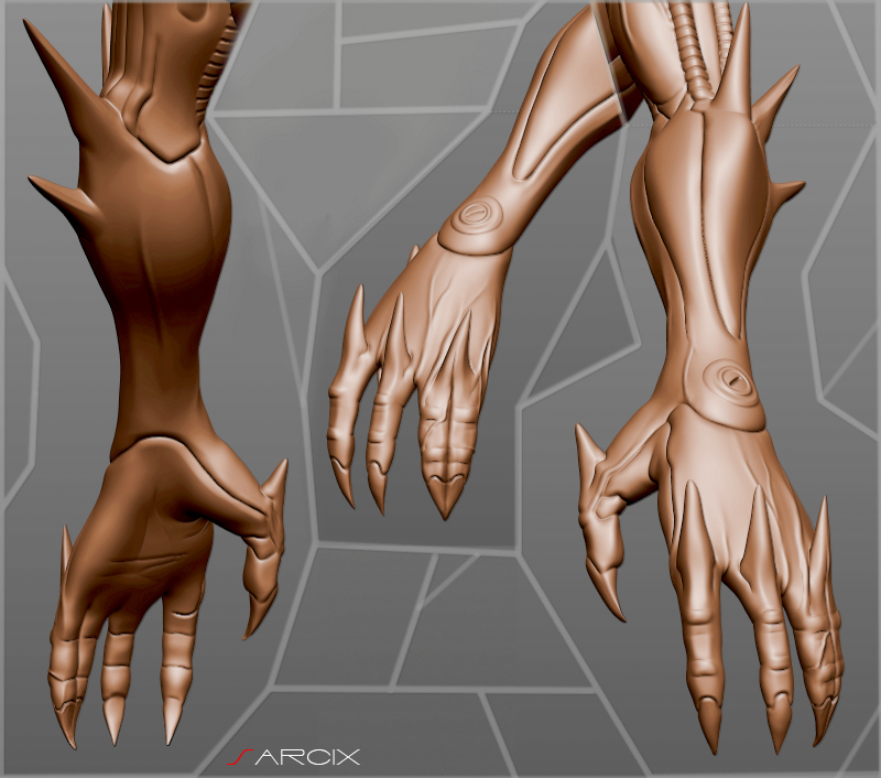Vi allego una prova delle mani, ho deciso di unire mignolo ed anulare, ormai quasi fuse come una coppia siamese, in maniera da renderlo più simpatico durante una stretta di mano