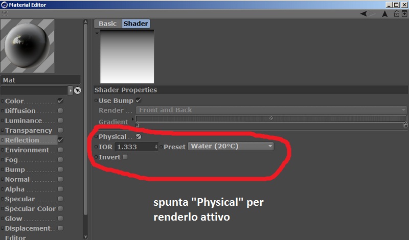 ma dove devo andare per attivare fisico? Non riesco a trovarlo nelle impostazioni fresnel :S