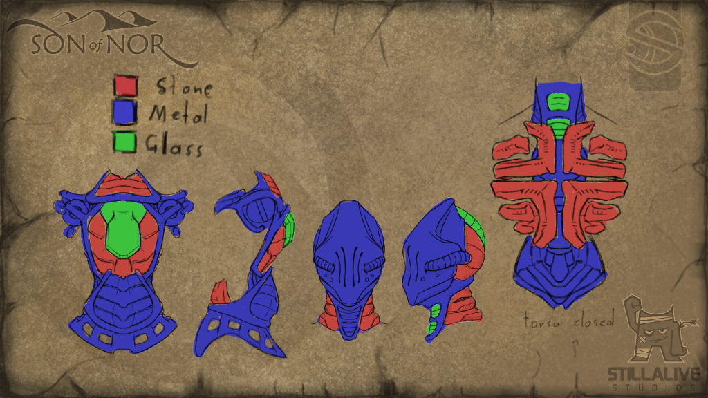 Ho passato al concept-artist lo 'stato di fatto' del modello, e lui ci ha dipinto sopra alcuni suggerimenti per l'armatura!