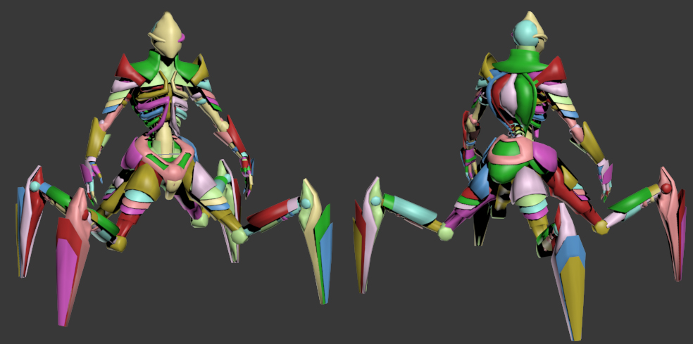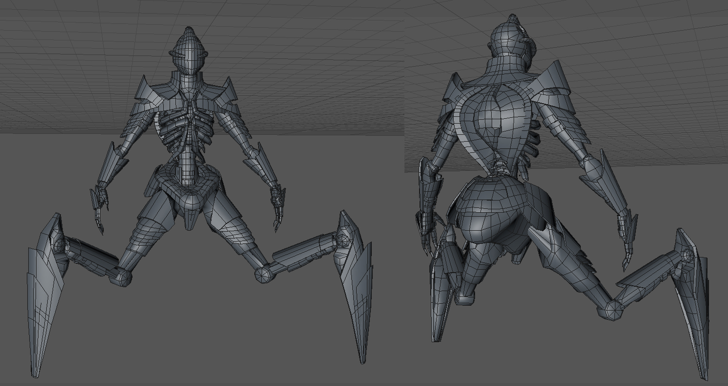 Ho deciso di usare la simmetria (riguardo il texturing) solo tra le 'zampe' anteriori e quelle posteriori.