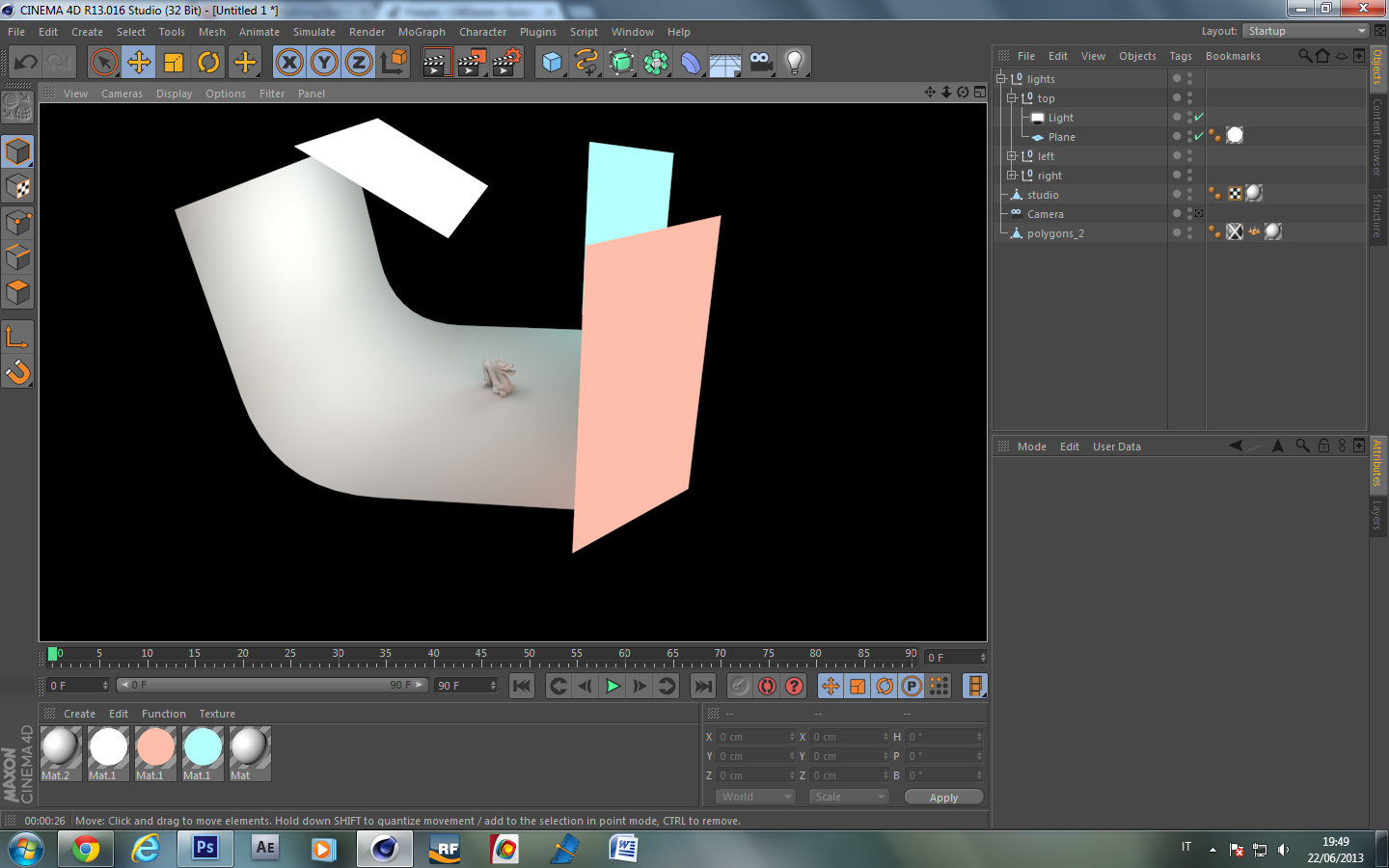 forse i colori sono troppo "forti" quindi li attenuerò un poco. il materiale dello studio è colore 2,2,2 ed ha riflessioni impostate su 1% + fresnel 1%