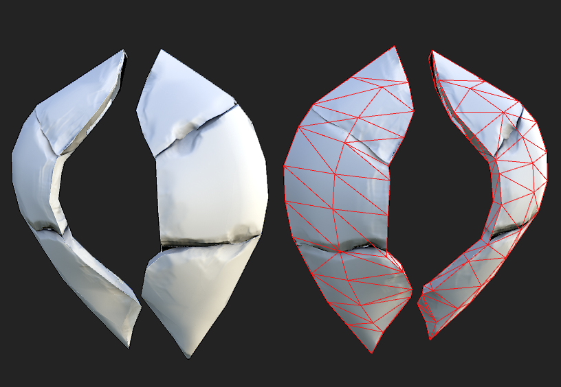 Ora manca 'solo' il baking dall'hipoly e dipingere le textures, prima però andrò ad aggiungere quell'ultimo livello di dettaglio al modello hipoly che darà 'vita' al personaggio, e che non inciderà sulla silhouette del modello lowpoly (erosione, graffi, ammaccature, ecc..)