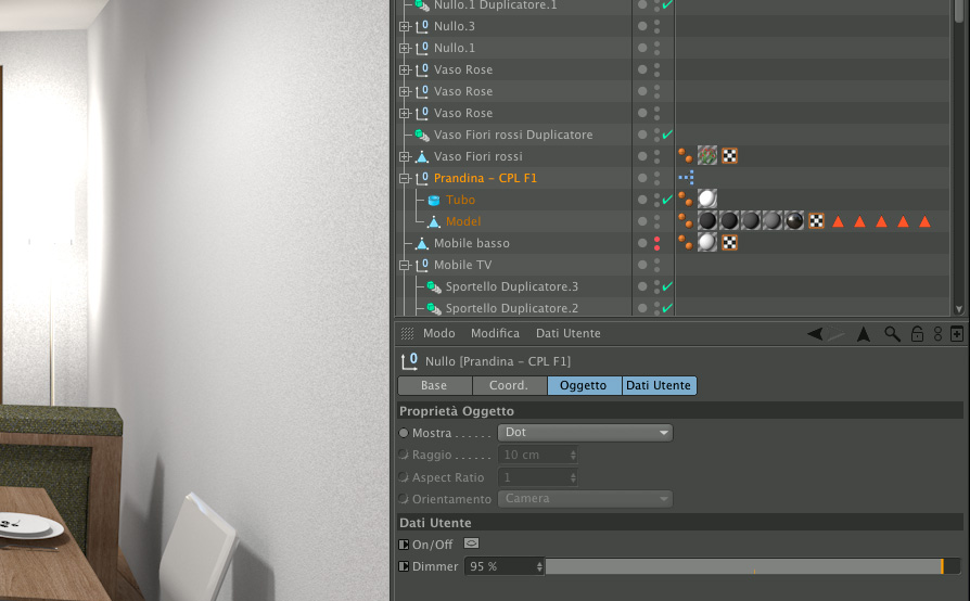 si infatti, credo proprio che manchi la luce..se il preset è così nella libreria penso sia incompleto. Dai un occhiata a qualche altro preset, vedrai che ci sono le luci anche. Per quanto riguarda l'xpresso, se ci sono dei nodi non definiti, i controlli non possono funzionare (quindi agire sul dimmer e sull'on/off non ha nessun risultato).